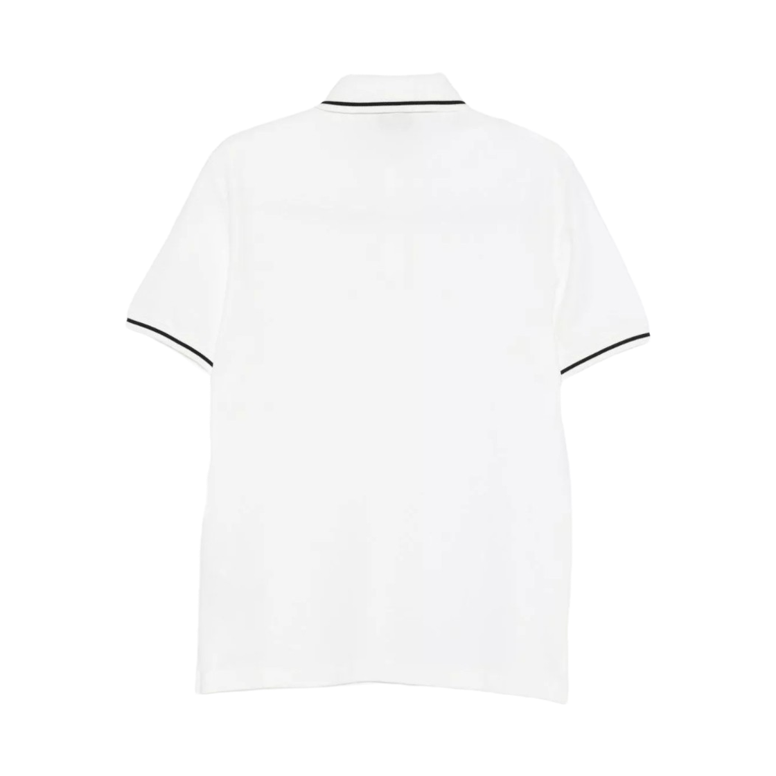 Emporio Armani Pique Polo Shirt with Micro Eagle Embroidery and Trim White
