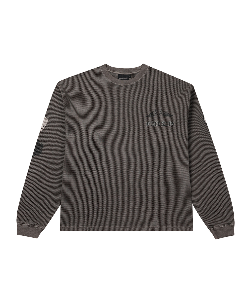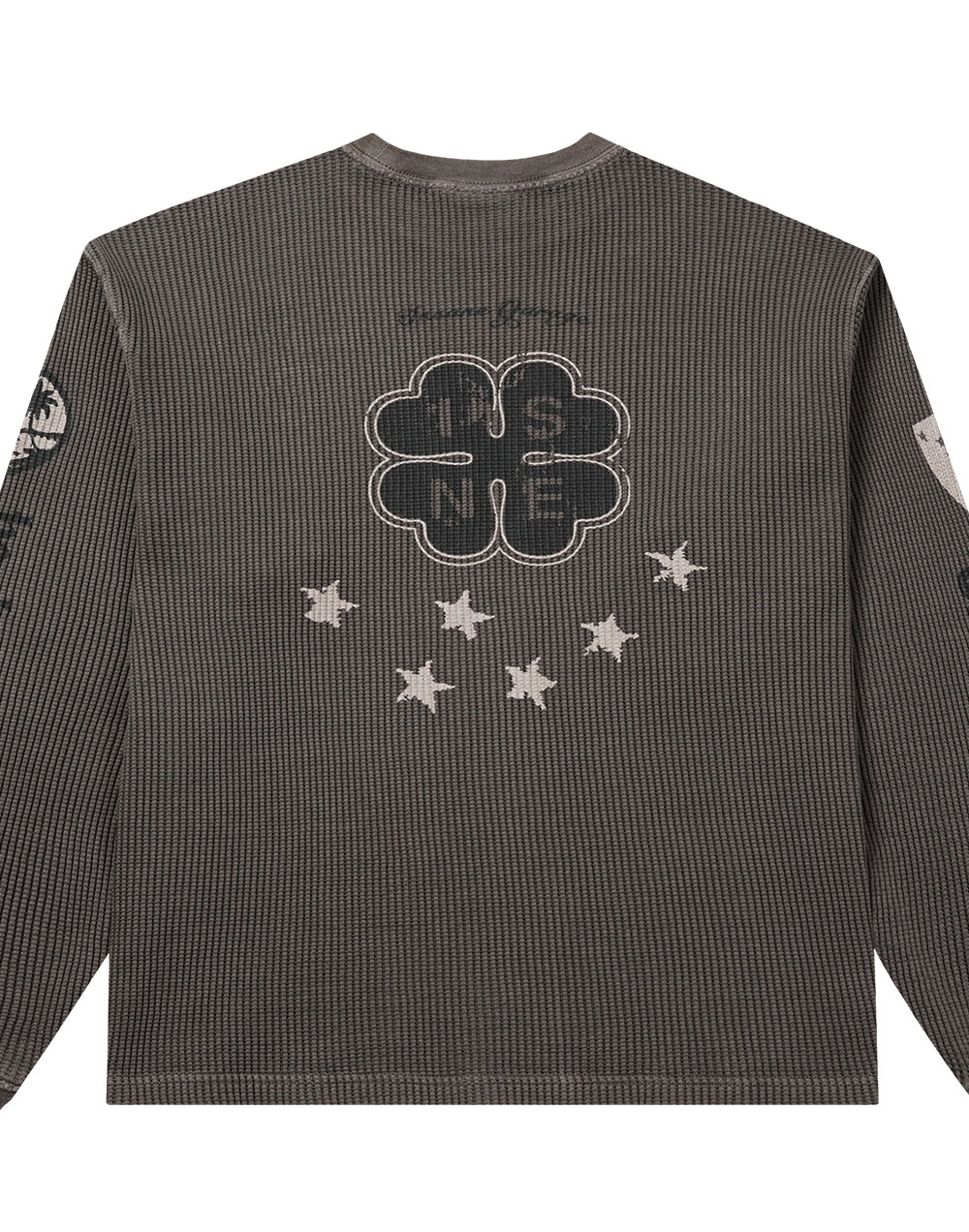 [CONTENT] Cotton 100% * MEASUREMENT MAY VARY +/-5% * COLOR MAY DIFFER DEPENDS ON THE LIGHT AND SCREEN CONDITION [DETAIL] • VINTAGE COLOR THROUGH PIGMENT-DYED FABRIC • IGS SEASONAL GRAPHIC PRINTS ON FRONT, SLEEVES, AND BACK • WAFFLE FABRIC SUITABLE FOR TRANSITIONAL SEASONS [CARE] -케어라벨 참고