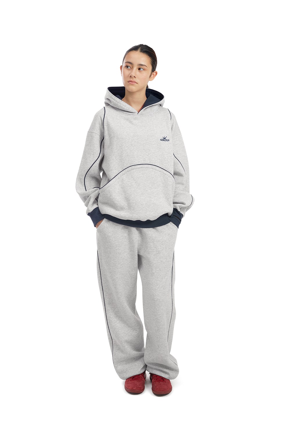 [트리플적립]SUNLOVE Crescent Brushed Hoodie Heather Grey