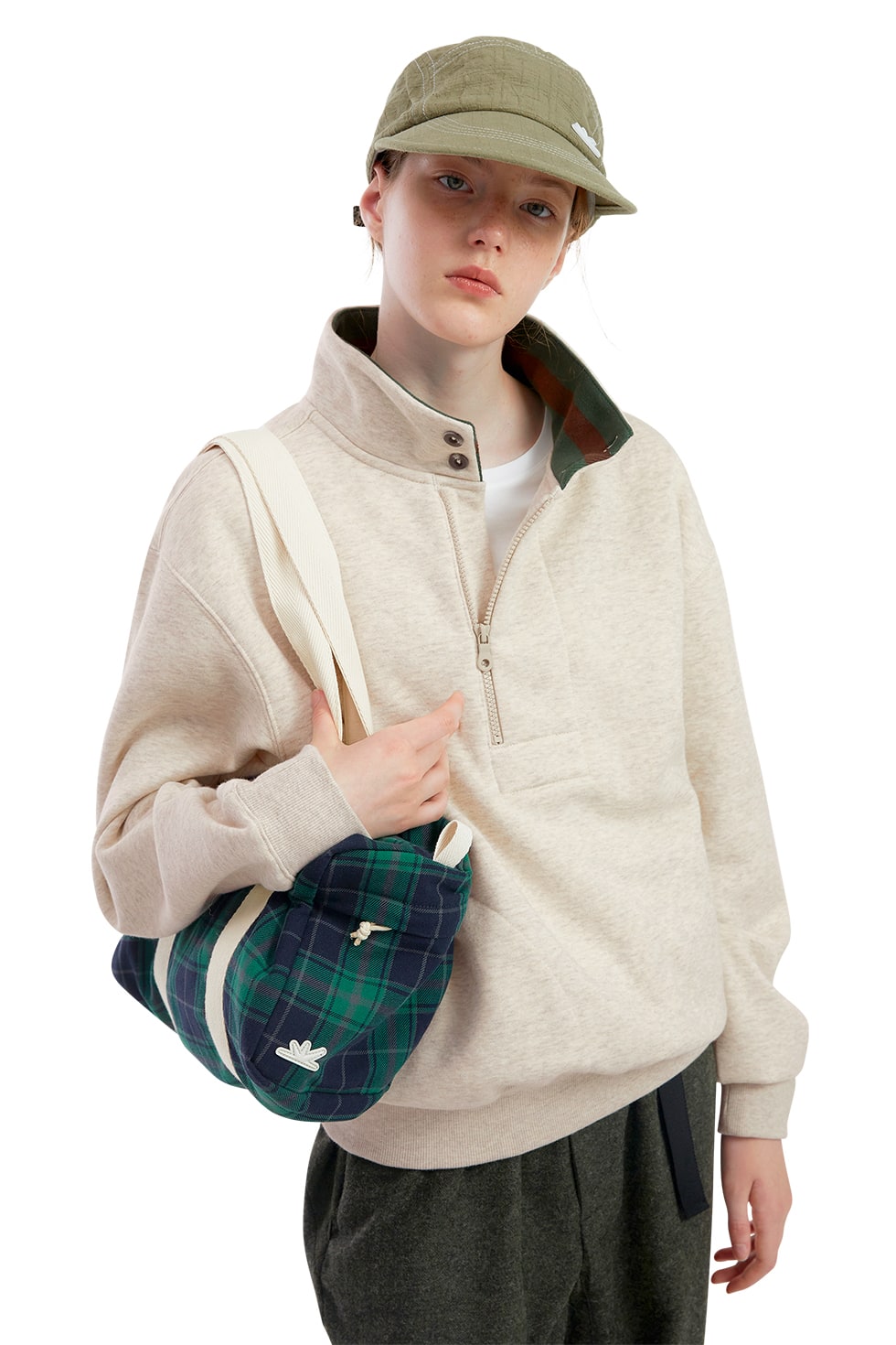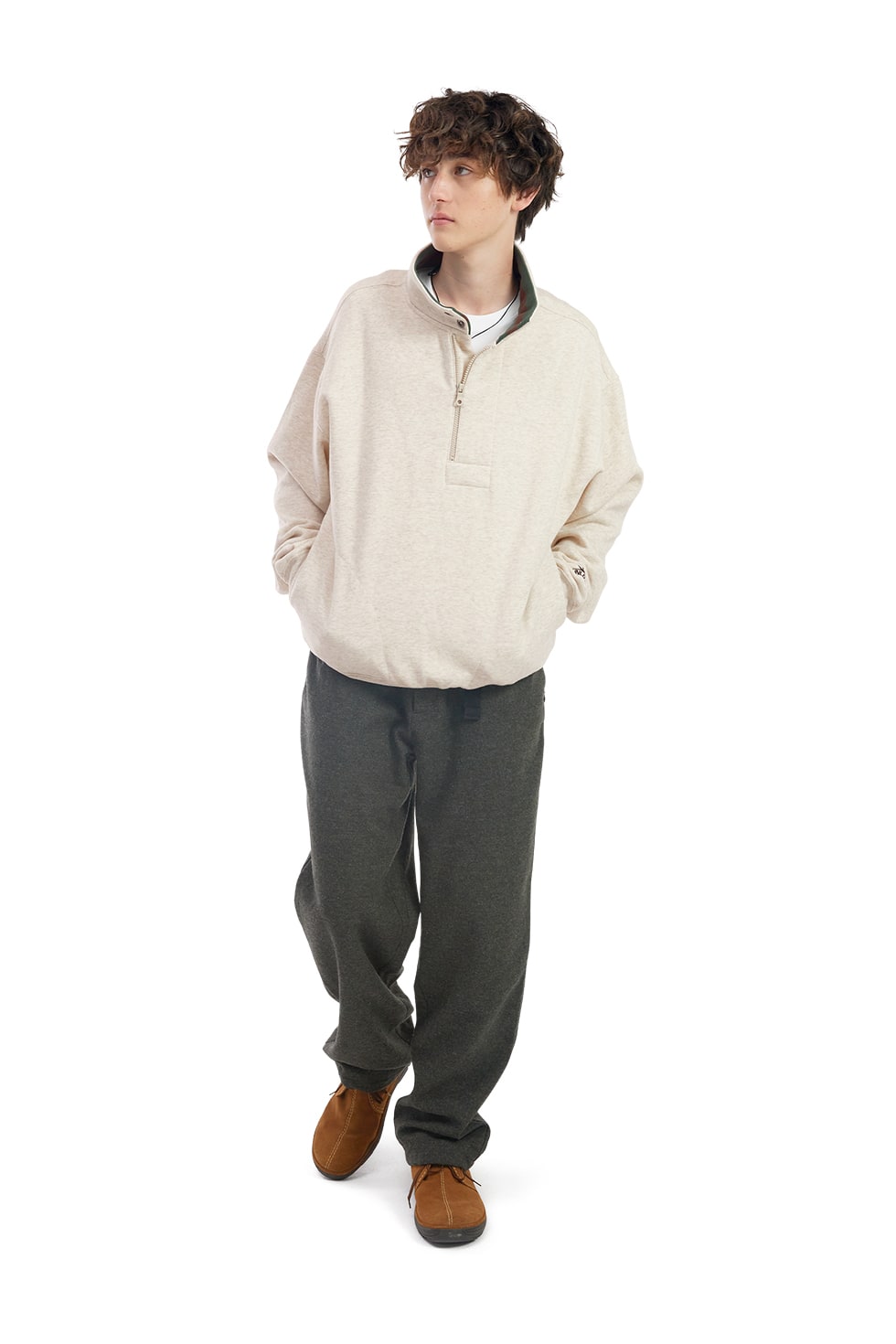 썬러브 카빈 하프 집 스웻 헤더 오트밀