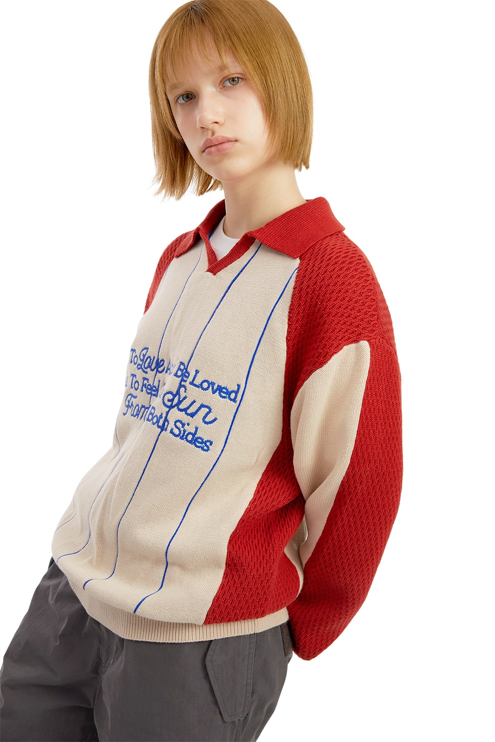 · 니트 져지 · 기능성 코튼 원사 사용 · 활동성을 고려해 다양한 조직 기법 사용 · 시즌 그래픽 자수 100% Cotton Made in Vietnam Male - Large/180cm Female - Small/165cm