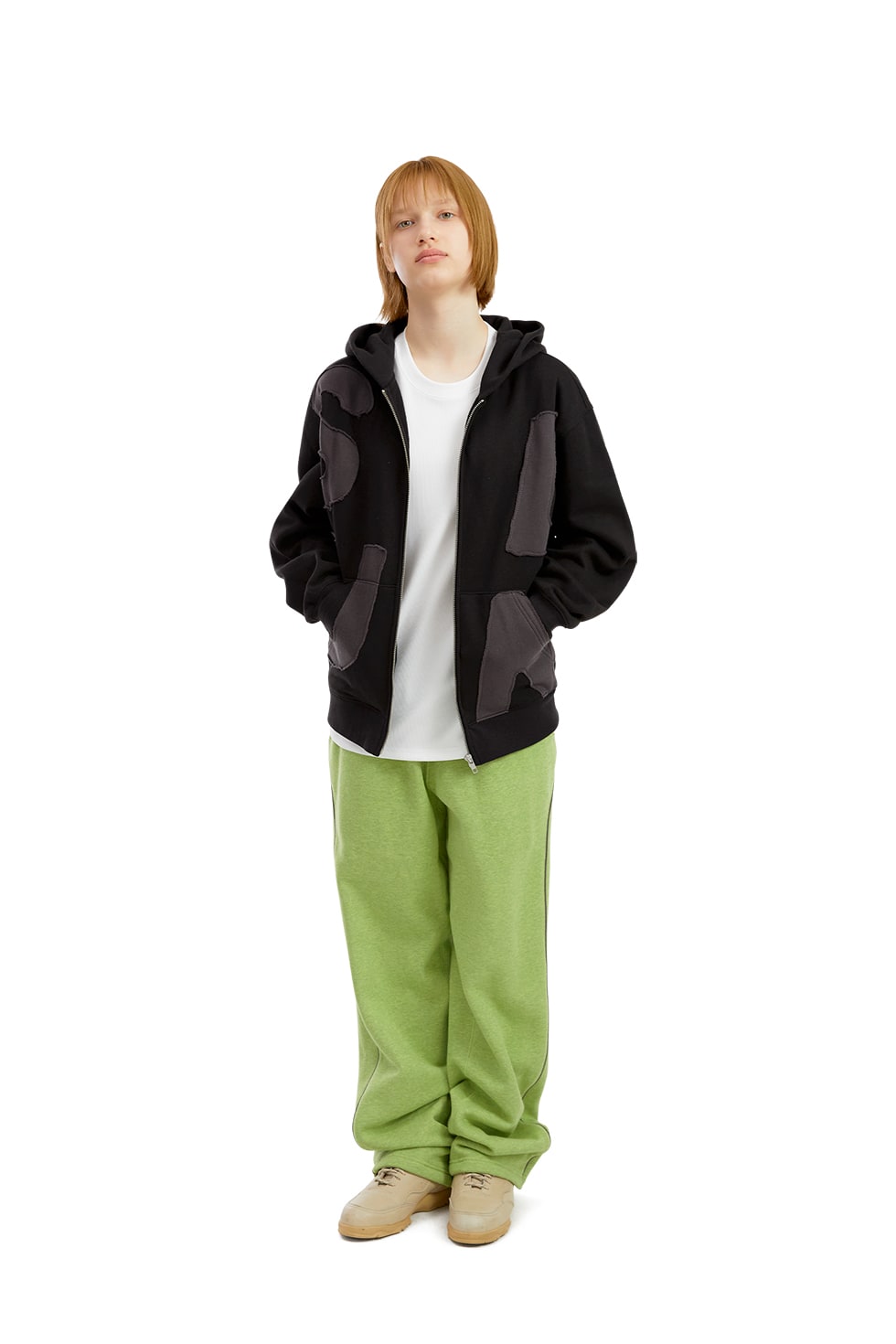 썬러브 크레센트 브러쉬드 스웻팬츠 헤더 라임