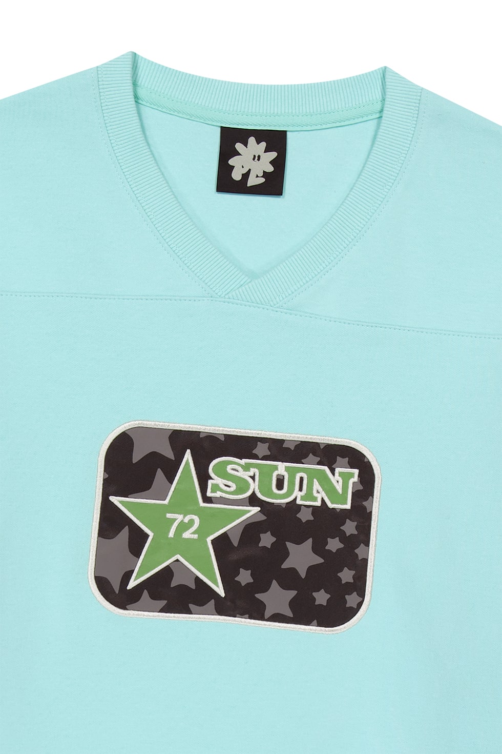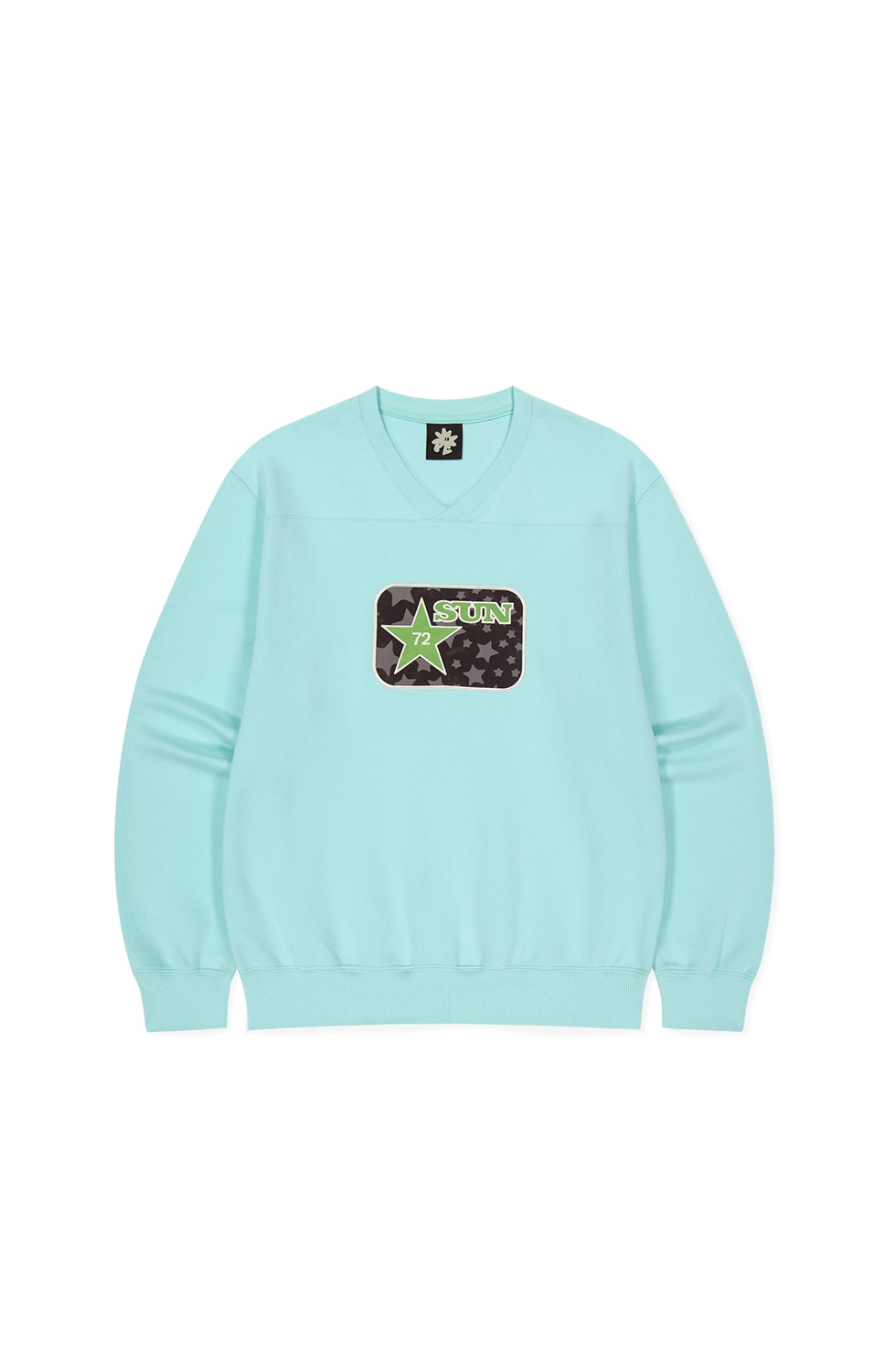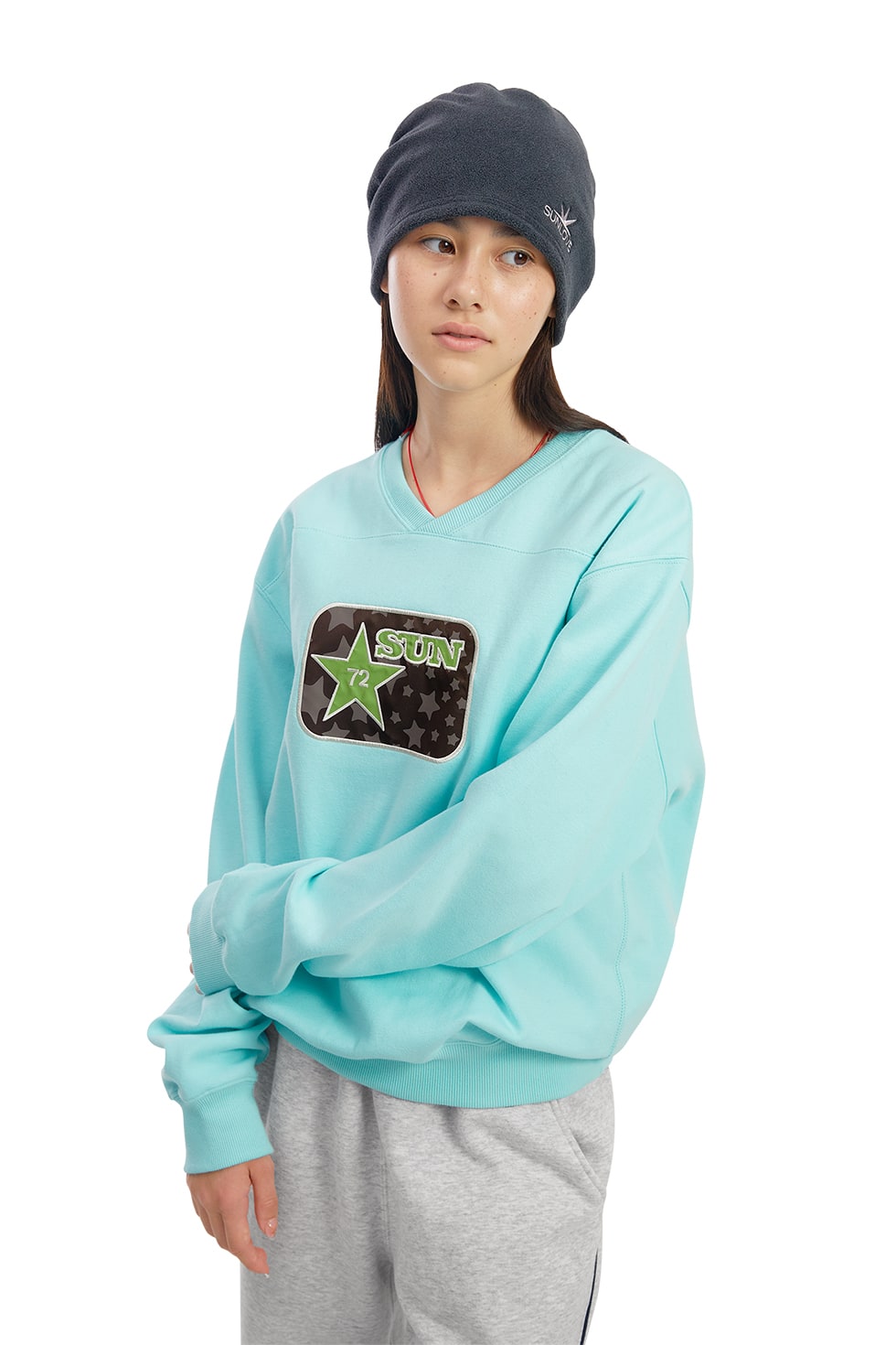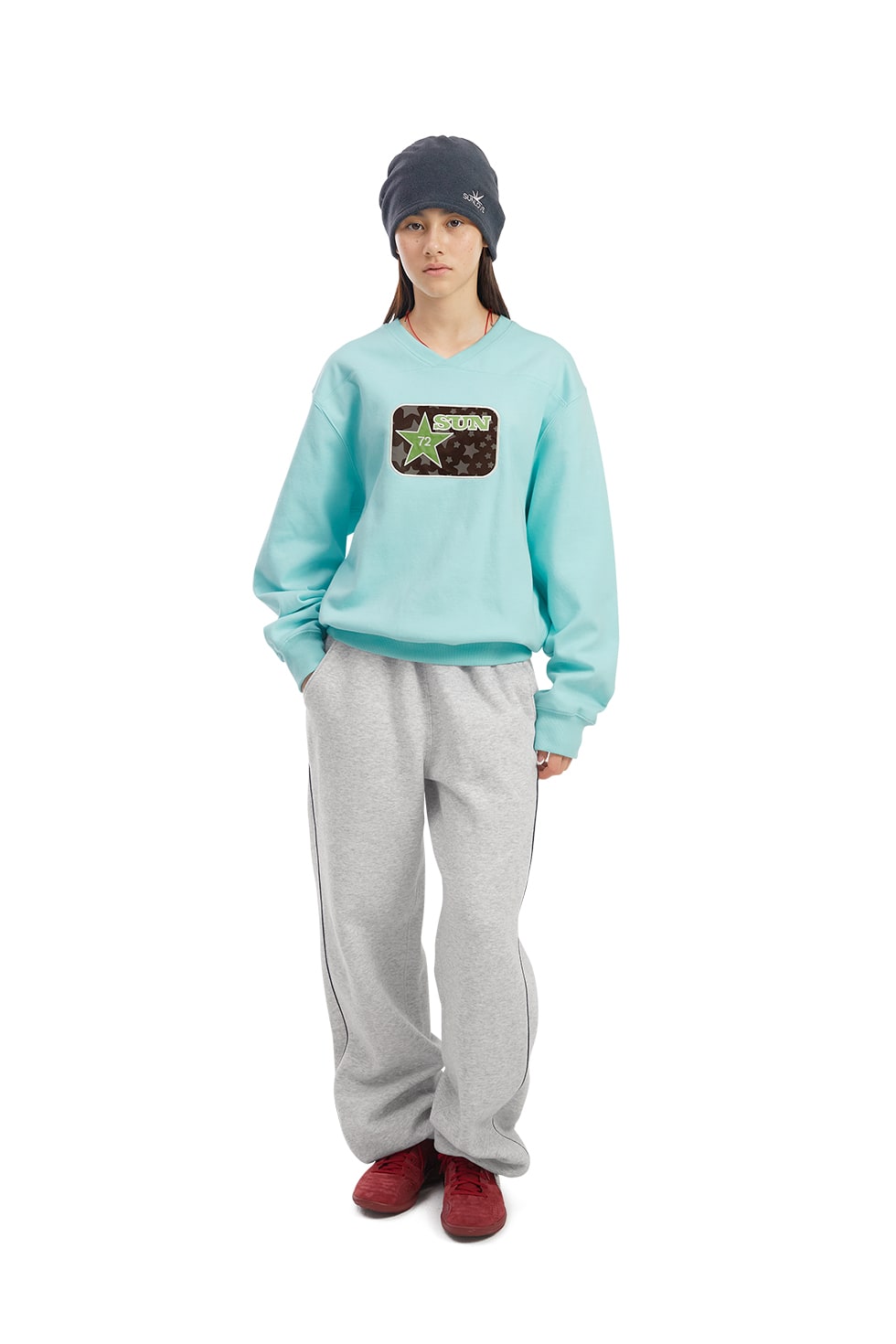 · V 넥 스웻 셔츠 · 면, 폴리에스터 혼방 특양면 원단 사용 · 폴리에스터 원사와 면 원사를 적절히 혼방하여 가볍고 스포티한 느낌 · 유연하고 소프트한 터치감 · 시즌 그래픽 아플리케 72% Cotton 28% Polyester Made in China Male - Large/180cm Female - Small/165cm