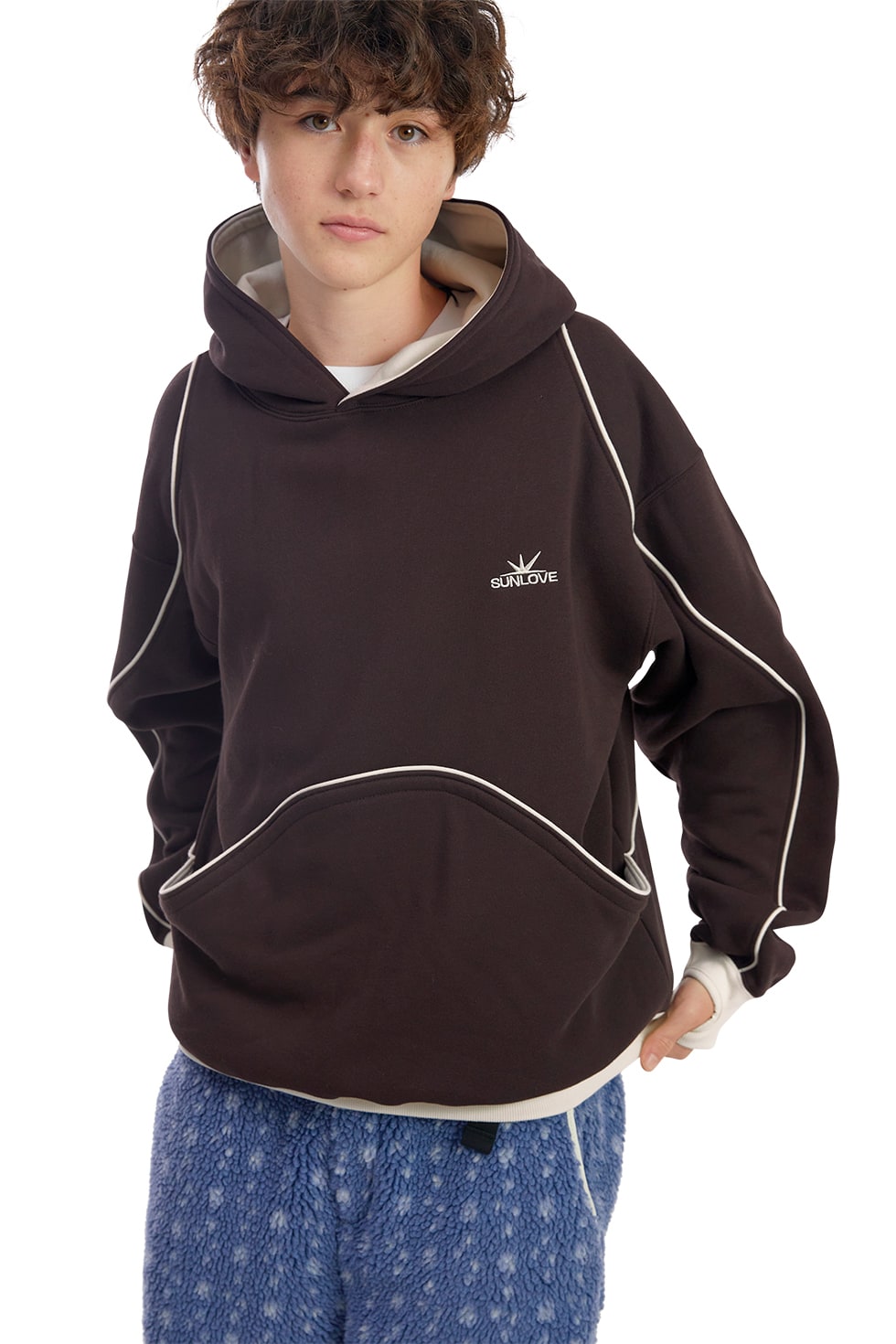 · 크레센트 기모 후디 · 면, 폴리에스터 혼방 원단 사용 · 기모 처리된 안감 · 폴리에스터 원사와 면 원사를 혼방하여 가볍고 스포티한 느낌 · 유연하고 소프트한 터치감 · 밑단, 소맷단 배색으로 밴딩 처리 · 파이핑 배색 디테일 · 앞판 포켓 · 데이브레이크 자수 로고 54% Cotton 46% Polyester Made in China Male - Large/180cm Female - Small/173cm