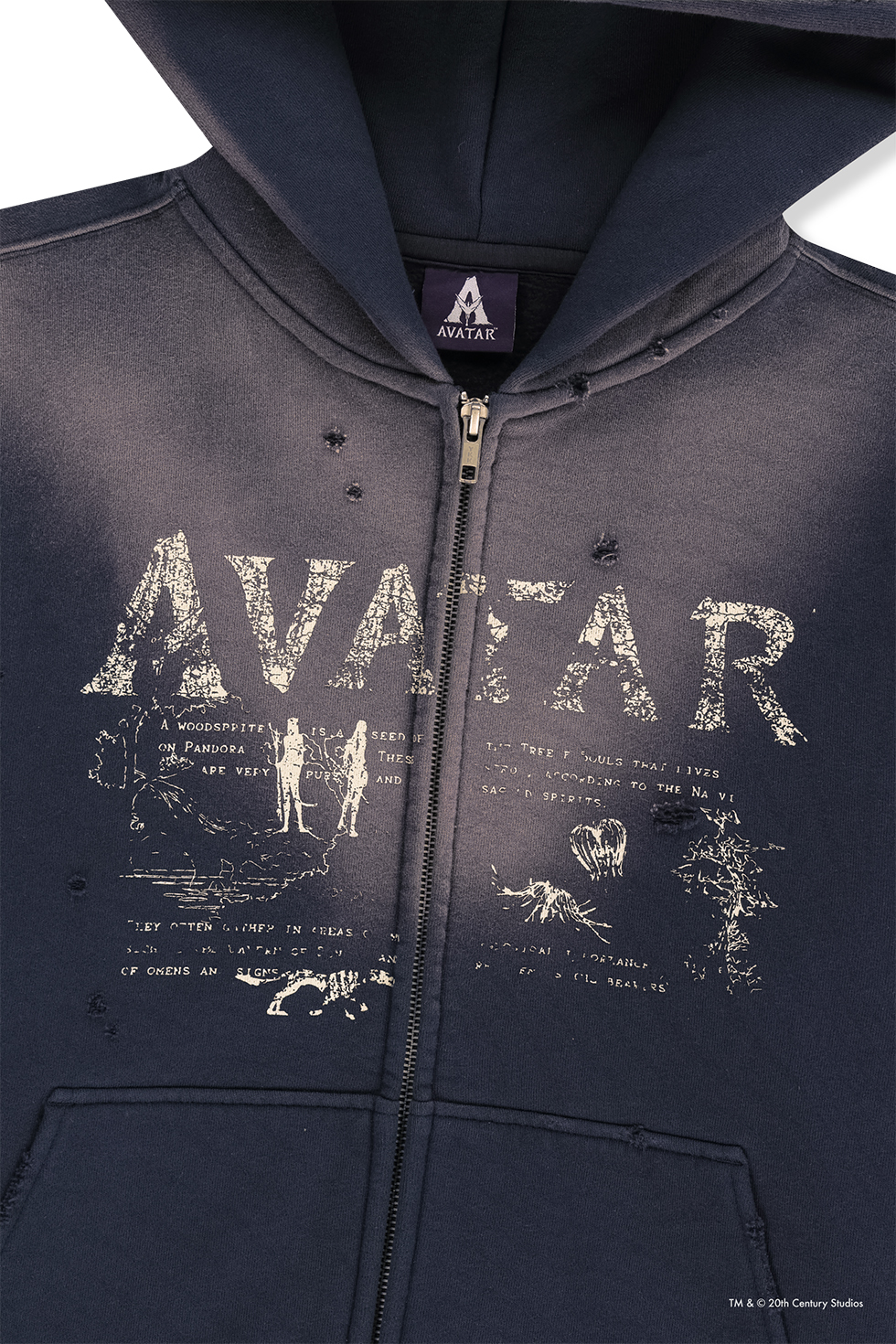 · 그래픽 워싱 후드 집업 · 코튼 쮸리 원단 사용 · 기모 있음 · 유연하고 소프트한 터치감 · 데미지 워싱 디테일 · 밑단, 소맷단 밴딩 처리 · 캥거루 포켓 · 전면, 후면 [AVATAR] 그래픽 나염 작업 · 소매 데이브레이크 로고 자수 100% Cotton Made in Vietnam