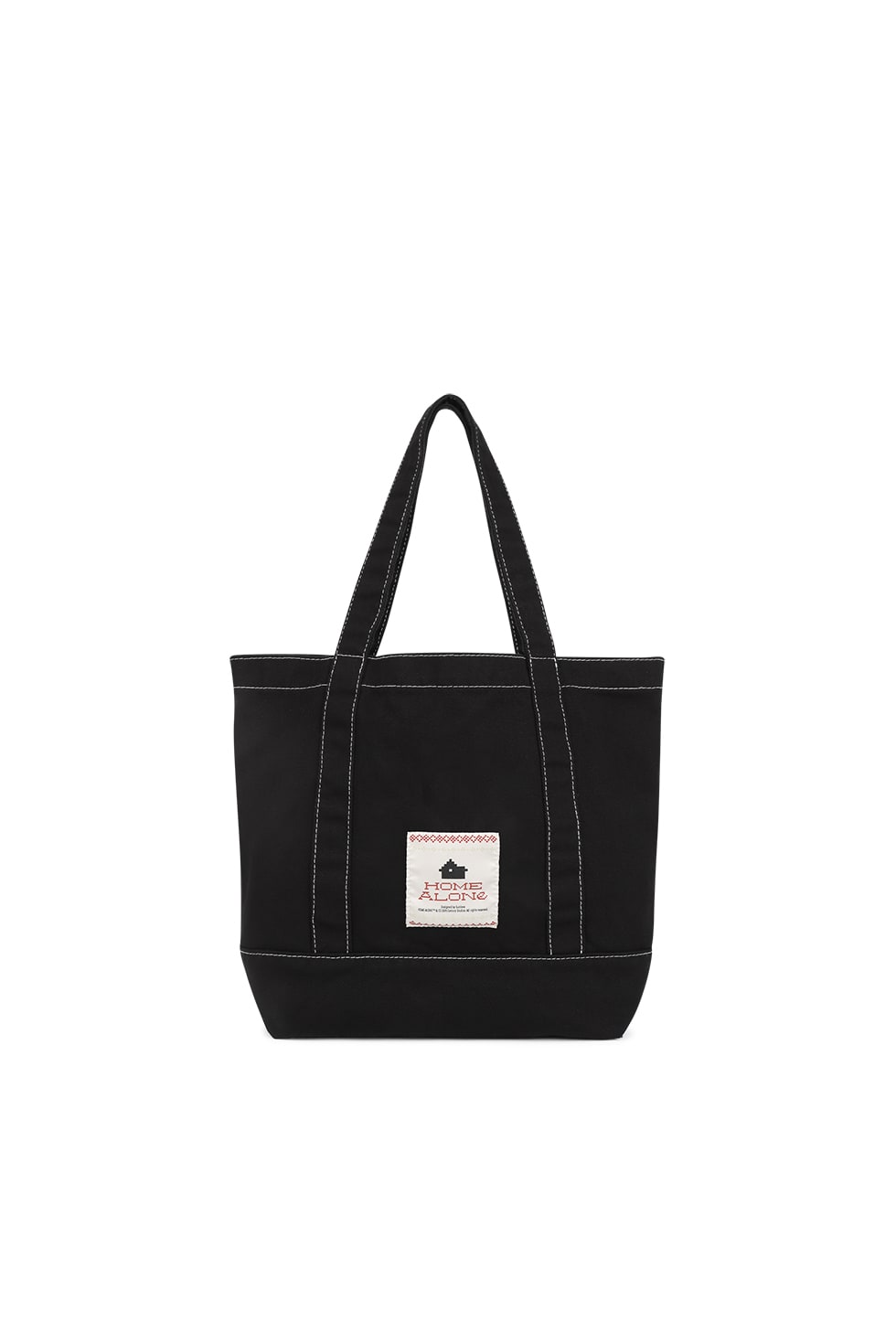 · 그래픽 토트백 · 고밀도 트윌 원단 사용 · 바이오 워싱 처리 · 전면 <HOME ALONe> 그래픽 나염 · 후면 디자인 라벨 100% Cotton Made in Korea