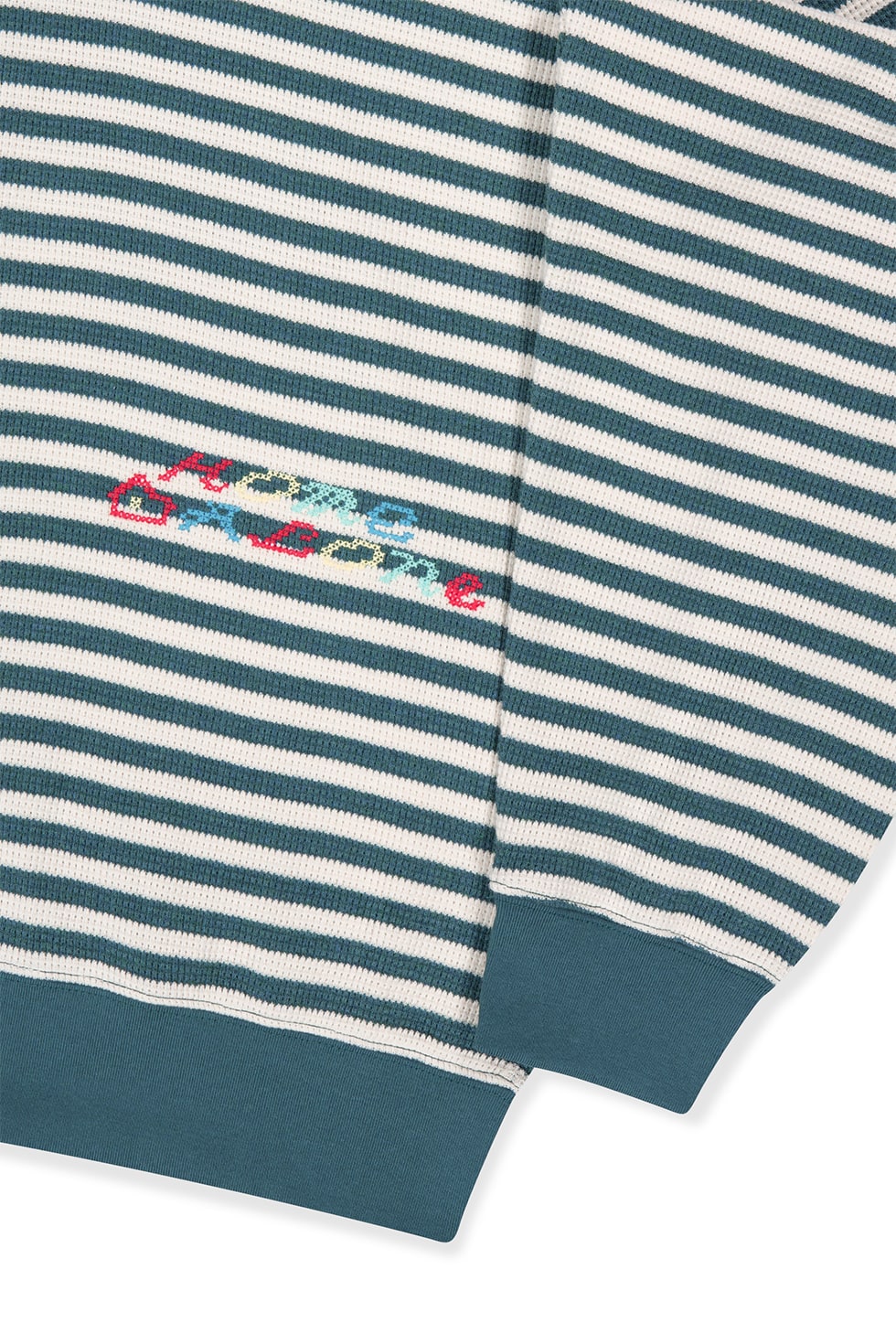 · 스트라이프 집업 후디 · 스트라이프 와플 원단 사용 · 유연하고 소프트한 터치감 · 밑단, 소맷단 밴딩 처리 · 후드 스트링 조절 가능 · 캥거루 포켓 · 전면에 YKK 지퍼 사용 · 데이브레이크 로고 자수 · <HOME ALONe> 그래픽 플라이 스티치 자수 작업 100% Cotton Made in Vietnam