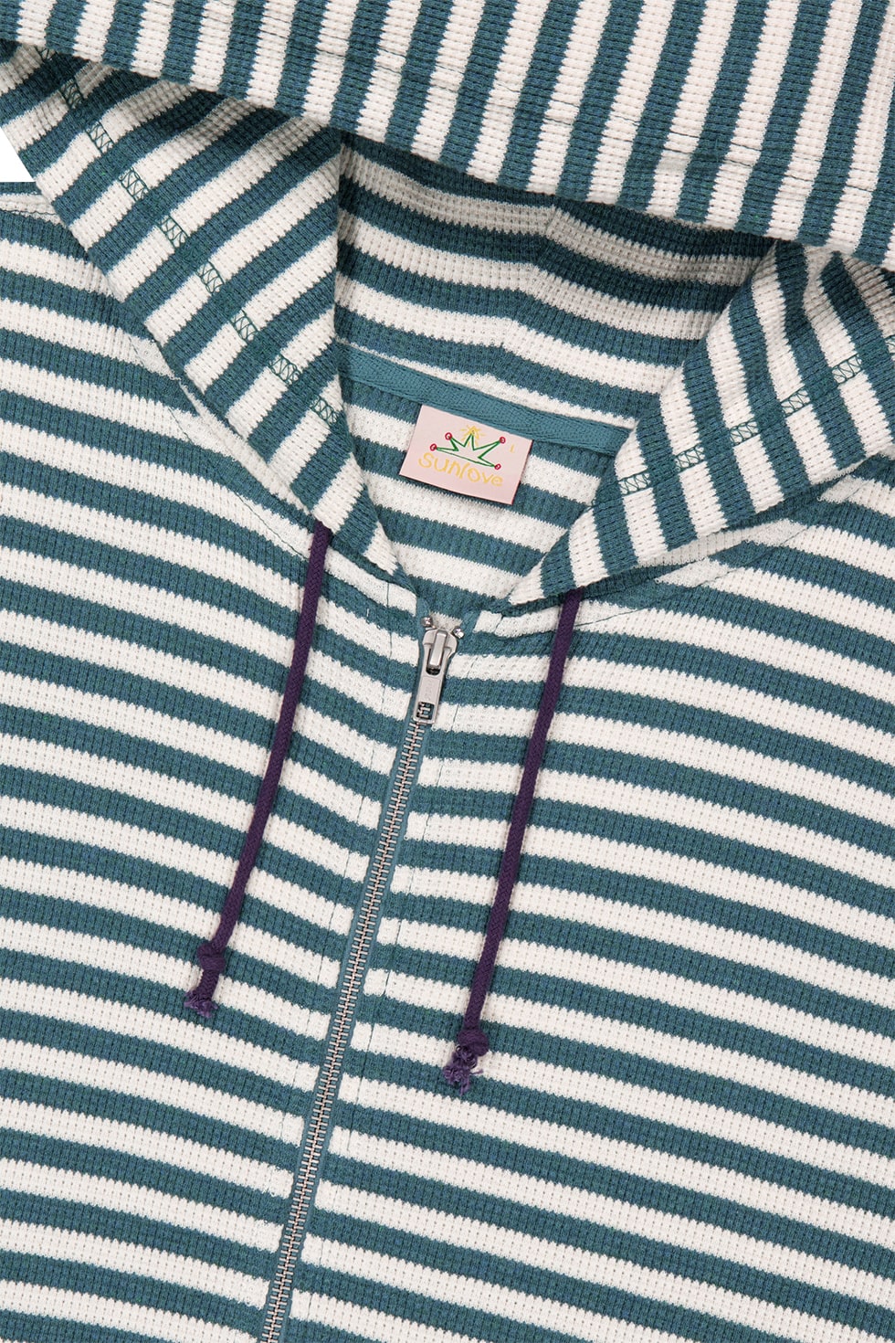 SUNLOVE <HOME ALONe> Striped Waffle Zip Up Hoodie Blue