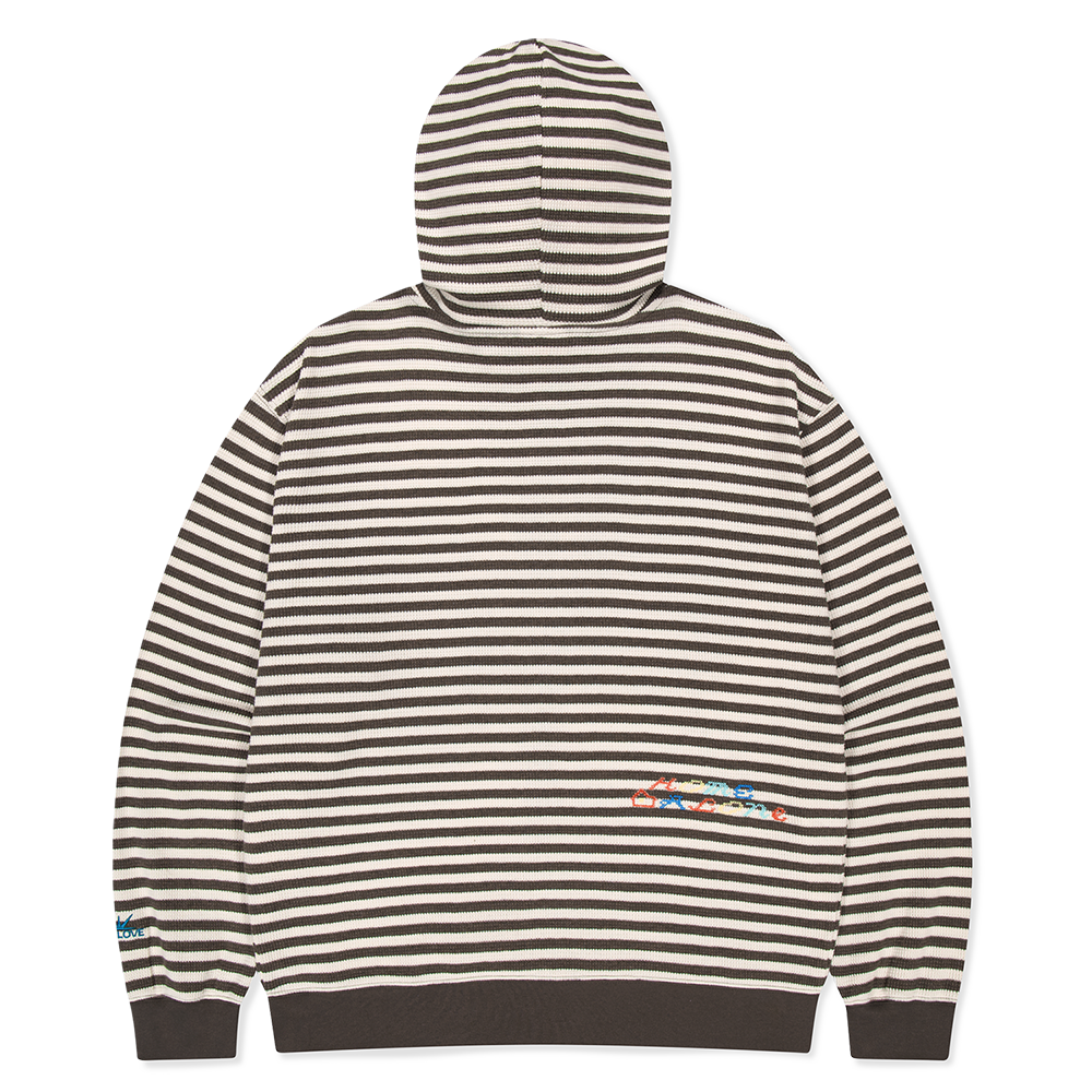 · 스트라이프 집업 후디 · 스트라이프 와플 원단 사용 · 유연하고 소프트한 터치감 · 밑단, 소맷단 밴딩 처리 · 후드 스트링 조절 가능 · 캥거루 포켓 · 전면에 YKK 지퍼 사용 · 데이브레이크 로고 자수 · <HOME ALONe> 그래픽 플라이 스티치 자수 작업 100% Cotton Made in Vietnam