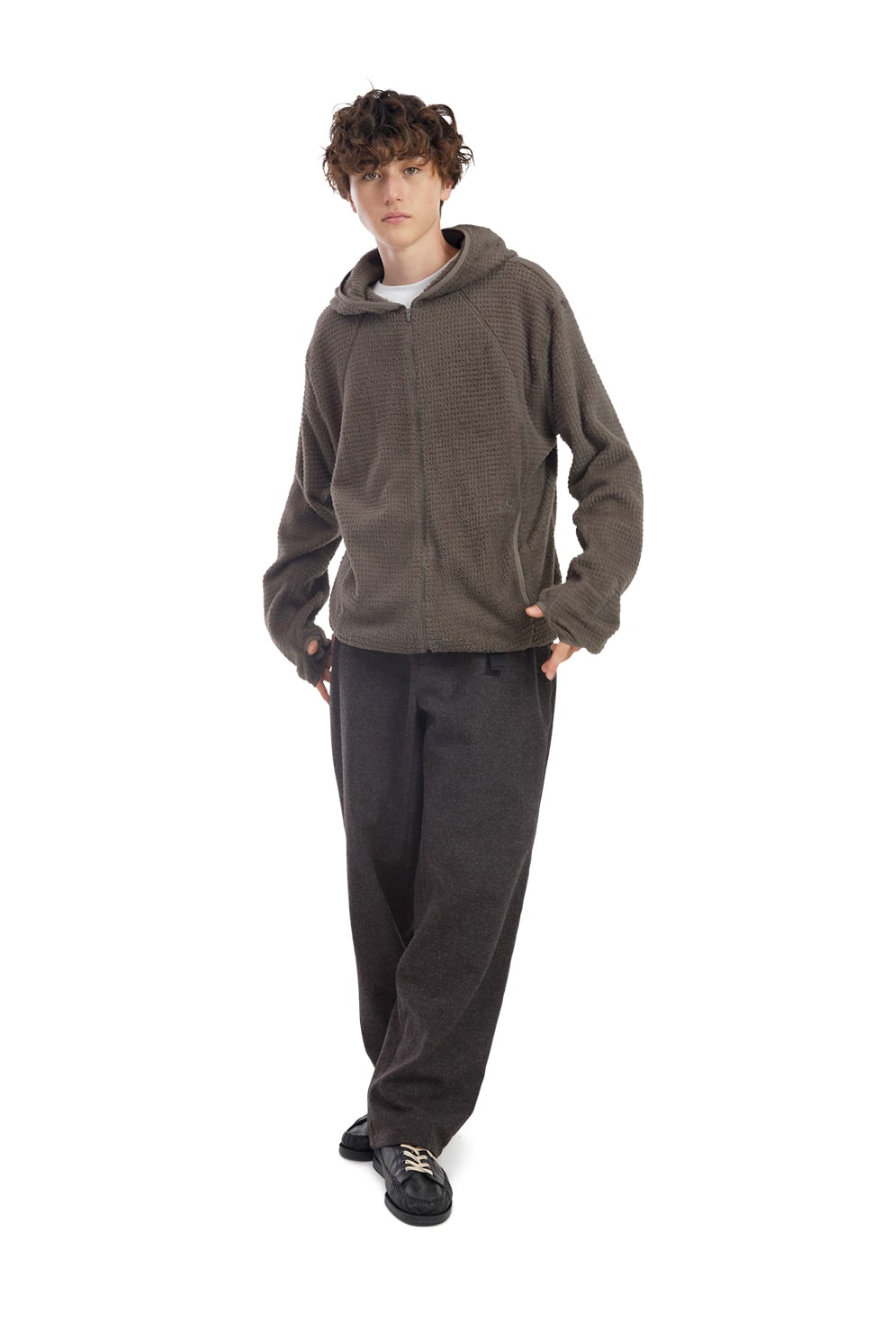 · 울 퀵 트라우저 · 일본산 고기능 친환경 리사이클 울 원단 RE:NEWOOL® 사용 · 보온성, 신축성, 경량성 우수 · 스트랩으로 허리 사이즈 조절 가능 · 밑단 스트링 조절 가능 · 인체 공학에 맞게 설계된 패턴 · 핸드폰, 볼마커 등 수납 가능한 포켓 내부 별도 포켓 · 볼파우치, 키링 등을 걸 수 있는 뒷고리 65% Wool 28% Polyester 4% Nylon 3% Acrylic Made in Korea Male - Large/180cm Female - Small/165cm