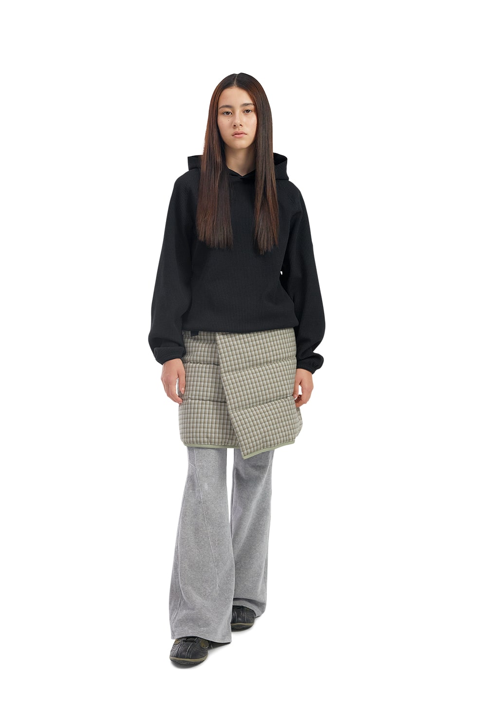 · 인슐레이트 랩스커트 · 3M Thinsulate 충전재 사용 · 일본산 코튼 플란넬 체크 원단 사용 · 보온성 우수 · 스트랩과 스냅으로 허리 사이즈 조절 가능 · 포켓에 YKK 지퍼 사용 · 데이브레이크 고무라벨 SHELL: 100% Cotton SHELL2: 69% Nylon 27% Cotton 4% Polyurethane LINING: 100% Nylon FILLING: 100% Polyester Made in Korea Female - Small/165cm