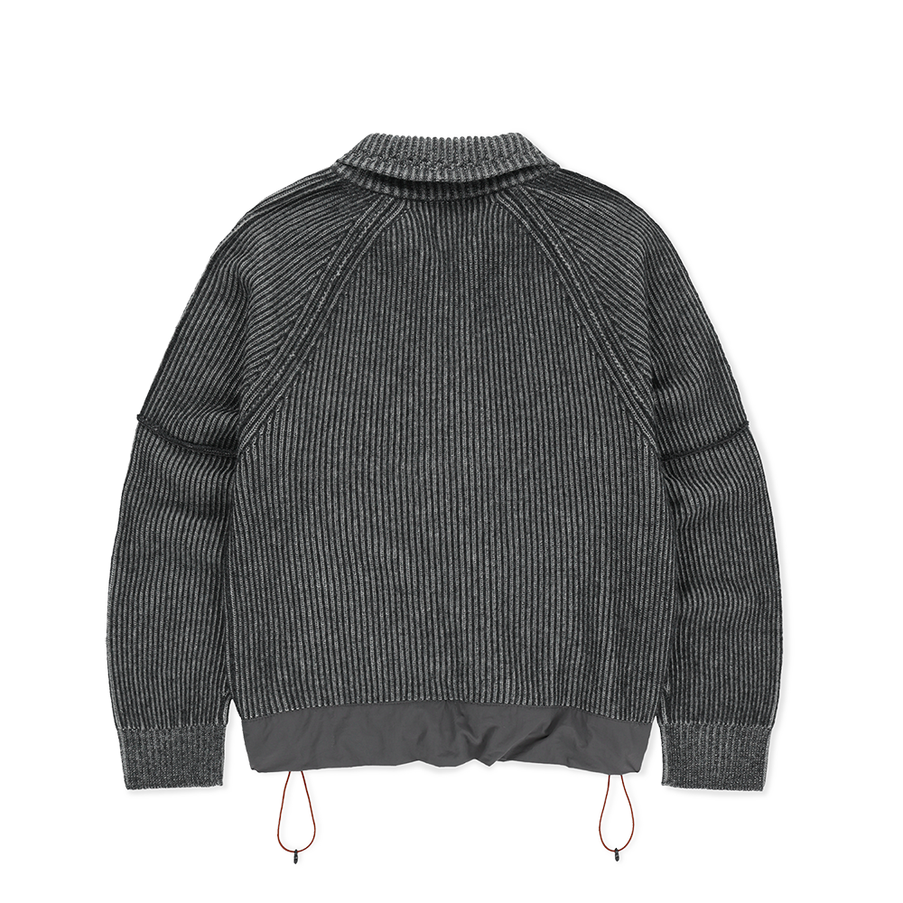 · 하프집 니트 · RWS 울과 리사이클 나일론 혼방 원사 사용 · 부드러운 터치감, 신축성, 보온성 우수 · 밑단 스트링으로 조절 가능 · 데이브레이크 고무라벨 30% Wool 35% Acrylic 35% Nylon Made in Vietnam Male - Large/180cm Female - Small/173cm