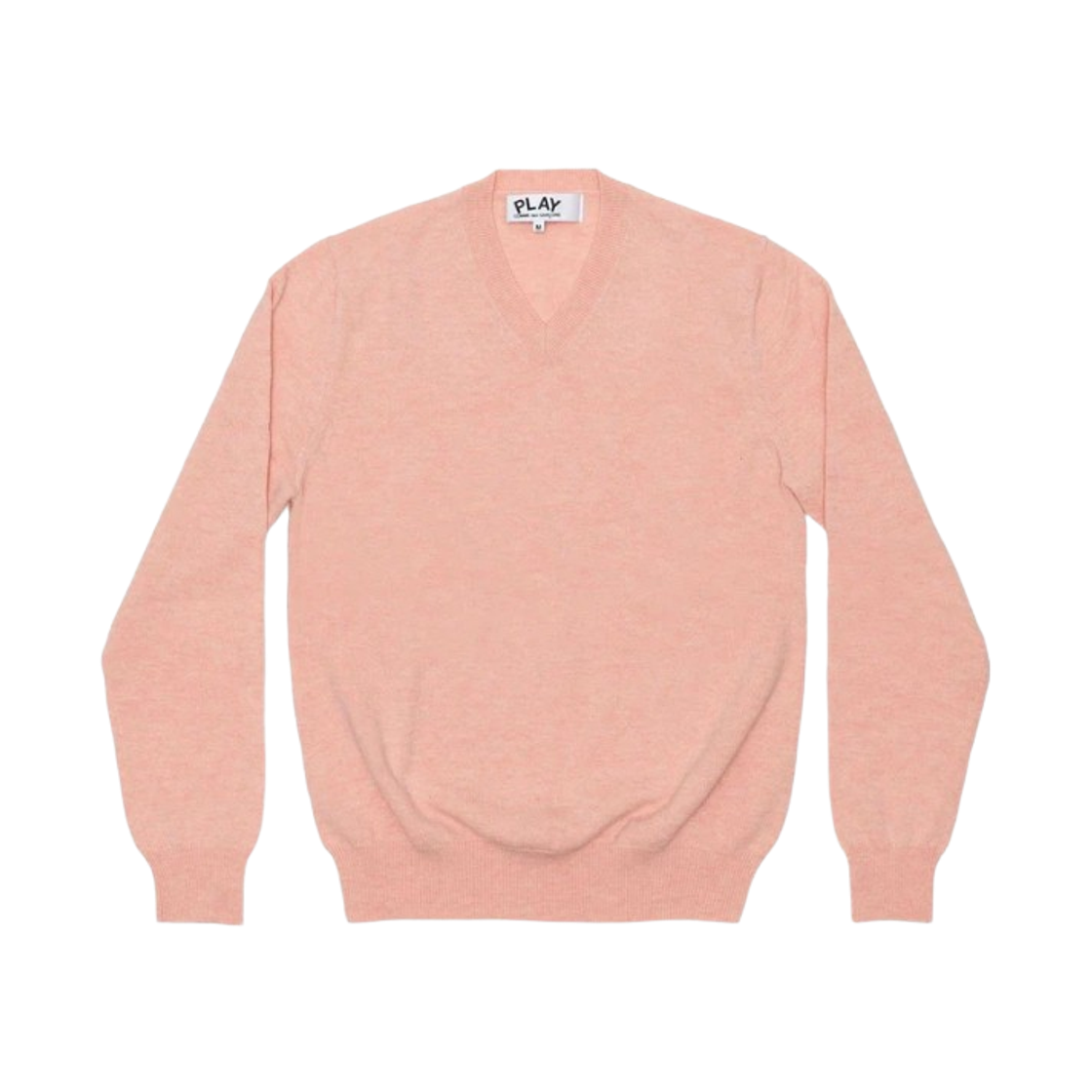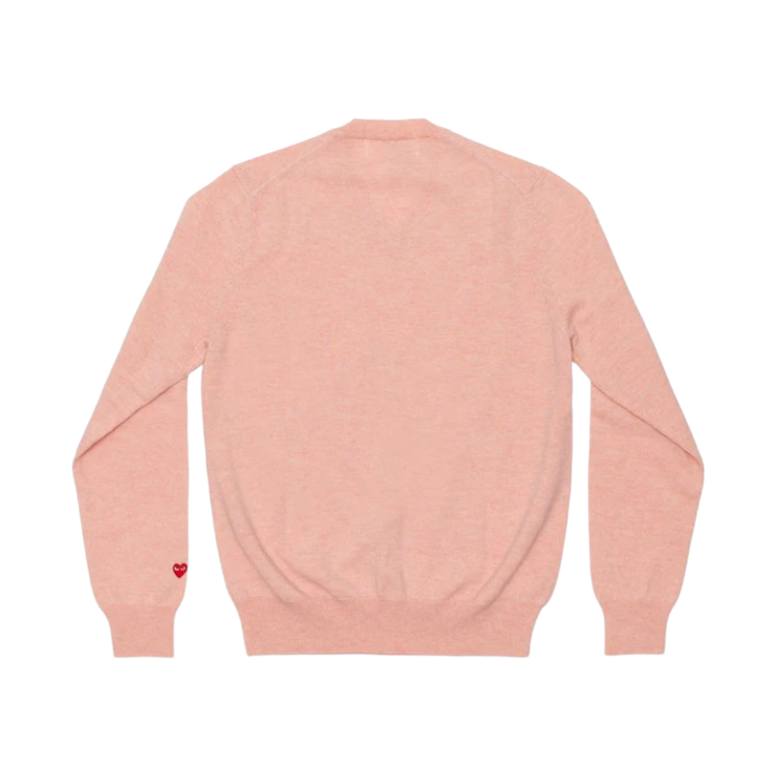 (W) Play Comme des Garcons Mini Red Heart V-Neck Sweater Light Pink