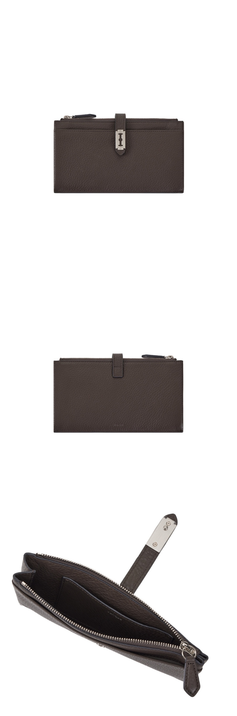 통수납 구조로 지폐 및 소품 수납이 가능한 장지갑스크래치에 강한 엠보 타입의 천연 소가죽 사용내부 안감도 가죽을 사용하여 부드러운 터치감과 높은 내구성(내부) 지퍼칸 1, 카드포켓 1 / (외부) 오픈포켓 1