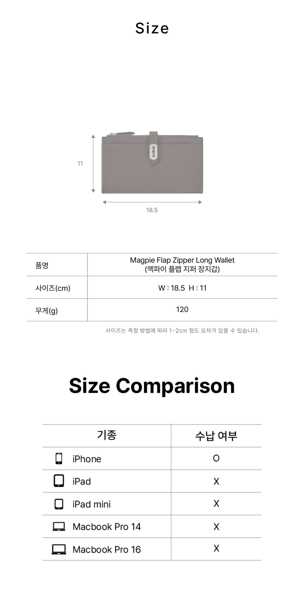 통수납 구조로 지폐 및 소품 수납이 가능한 장지갑스크래치에 강한 엠보 타입의 천연 소가죽 사용내부 안감도 가죽을 사용하여 부드러운 터치감과 높은 내구성(내부) 지퍼칸 1, 카드포켓 1 / (외부) 오픈포켓 1