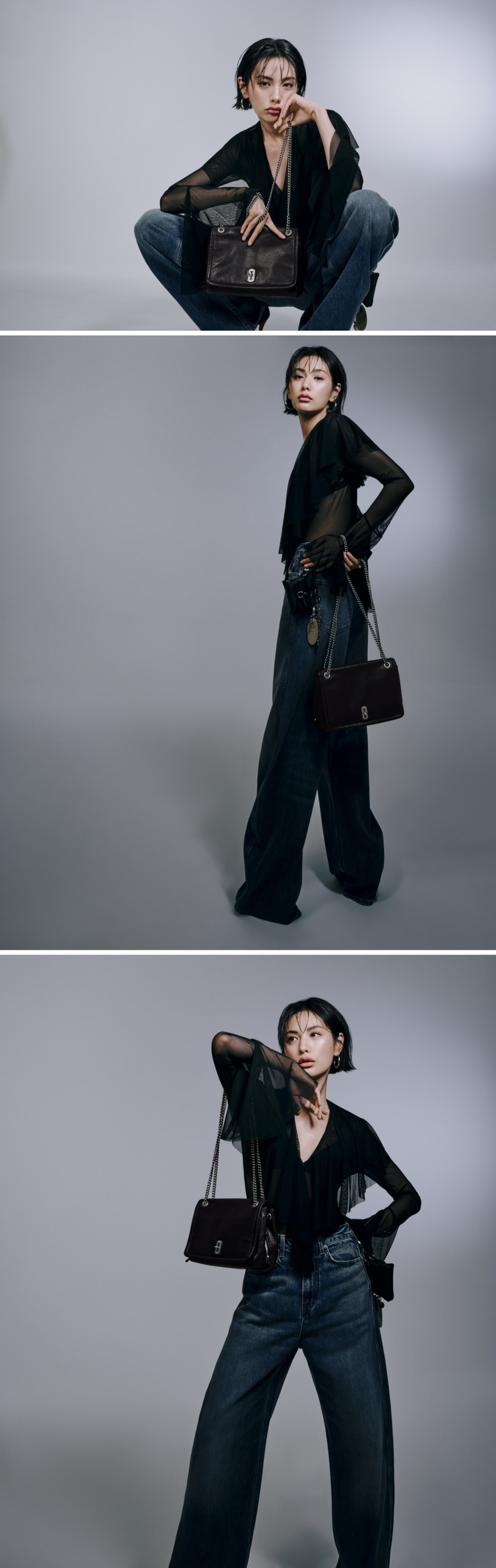 부드럽고 고급진 고트 레더를 사용하여 자연스럽게 모양이 잡히는 아이템플랩형 덮개에 멋스럽게 흐르는 광택감이 매력적인 체인 숄더백사이드 지퍼를 활용하여 내부 수납공간 확장 가능슬라이딩 체인으로 숄더/크로스 연출 가능