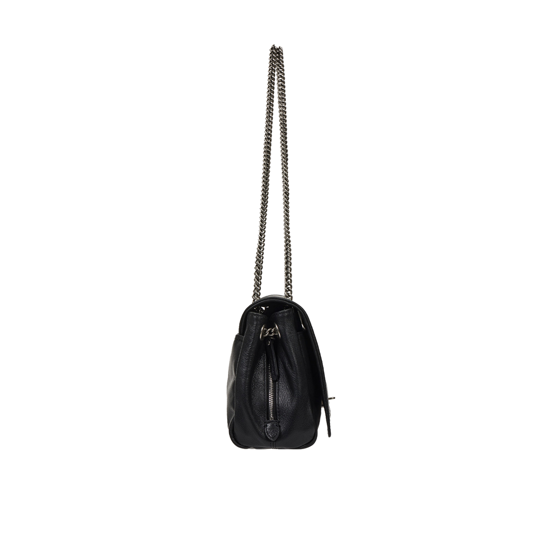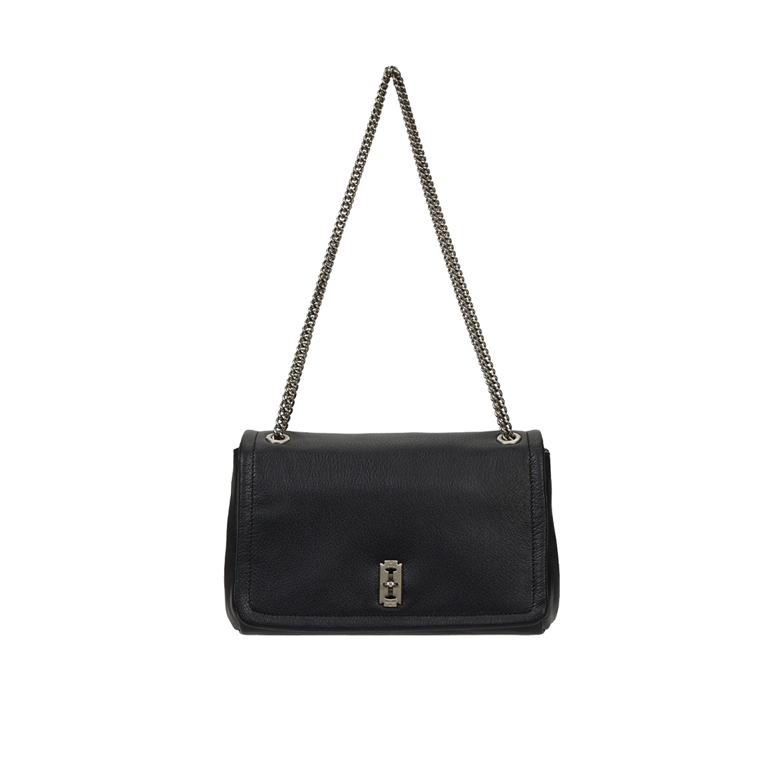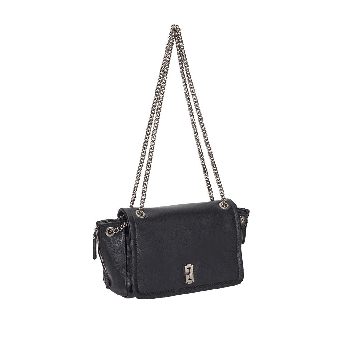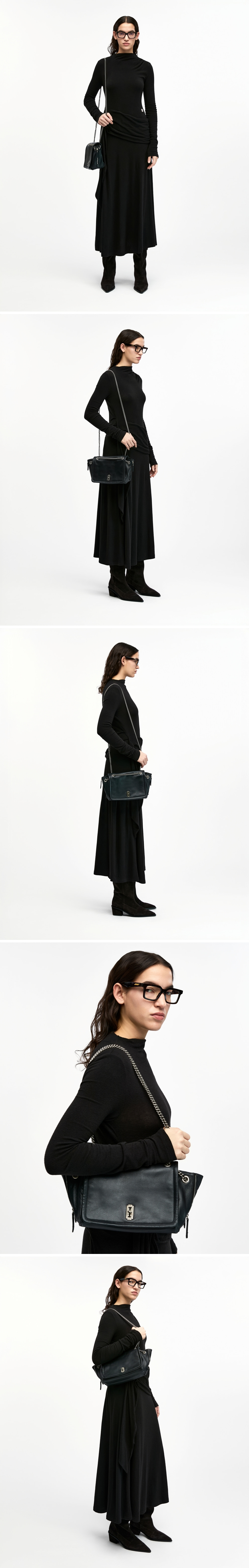 부드럽고 고급진 고트 레더를 사용하여 자연스럽게 모양이 잡히는 아이템플랩형 덮개에 멋스럽게 흐르는 광택감이 매력적인 체인 숄더백사이드 지퍼를 활용하여 내부 수납공간 확장 가능슬라이딩 체인으로 숄더/크로스 연출 가능