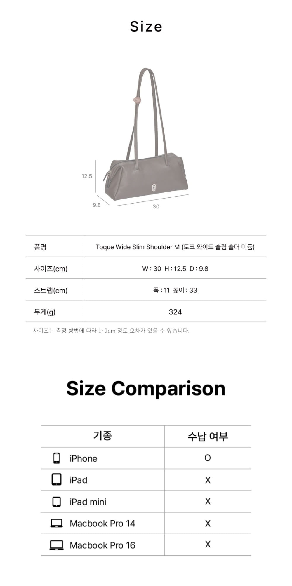 분크 토크 와이드 슬림 숄더 미듐 라떼핑크