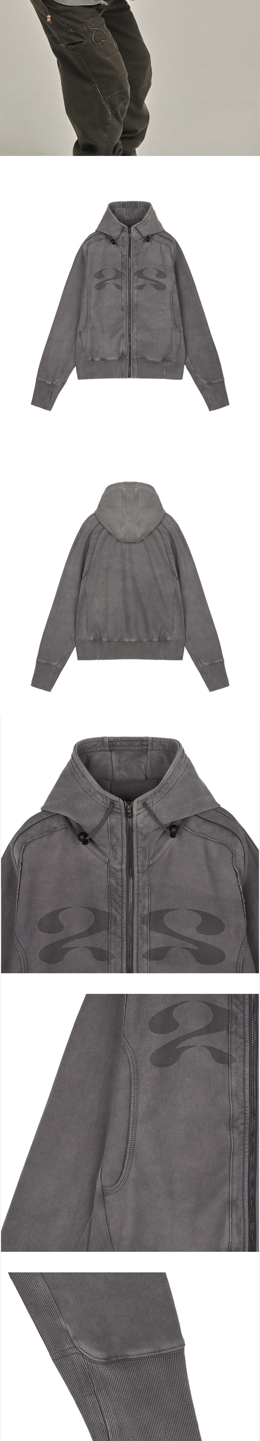 지안 예 25 후디 그레이입니다. - 전면 가슴에 그래픽 프린트 - 측면 곡선 포켓 - 숄더 절개 및 파이핑 디테일 - 후면 로우 엣지 디테일 - 후드 토글 디테일 및 드로우 스트링