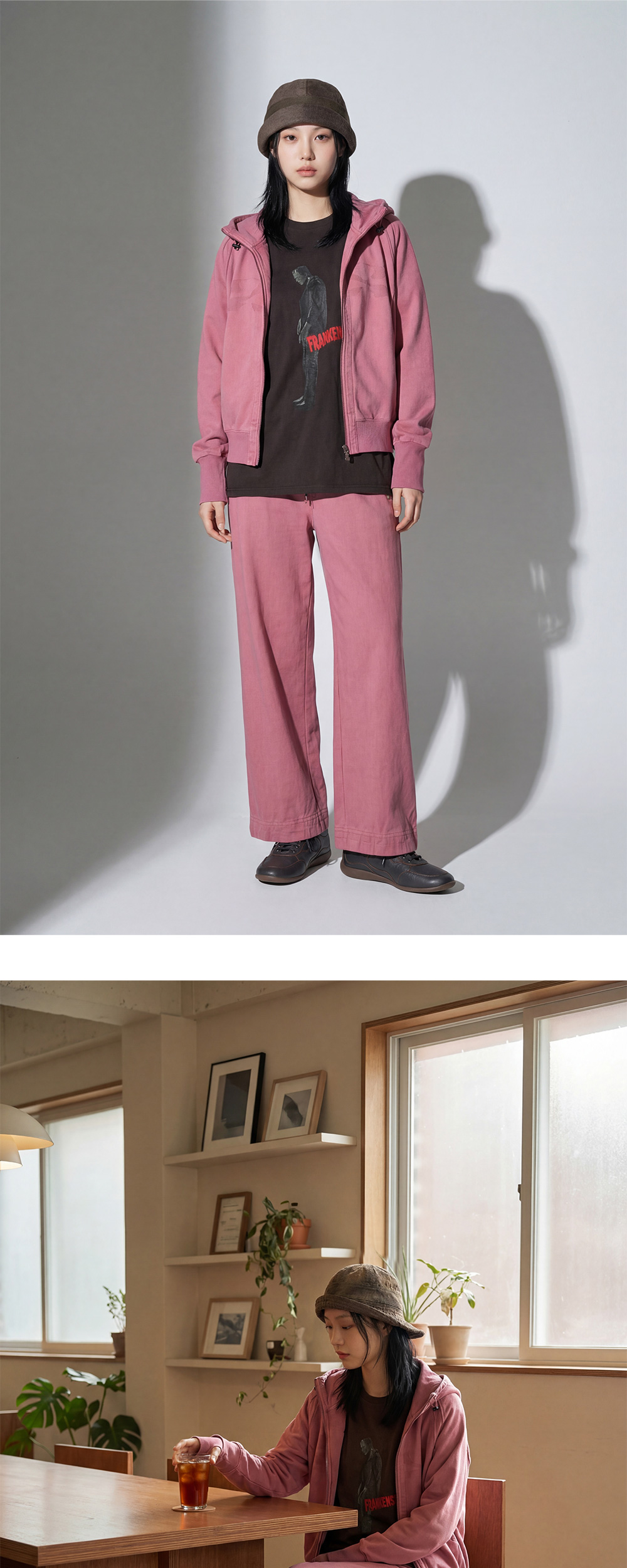 지안 예 25 팬츠 핑크입니다. - 빈티지한 워싱이 들어간 밴딩 팬츠 - 토글 드로우 스트링 - 후면 엉덩이에 그래픽 프린트 - 밑단 스티치와 함께 구멍 디테일 ✧ AI로 제작한 콘텐츠가 포함되었습니다.