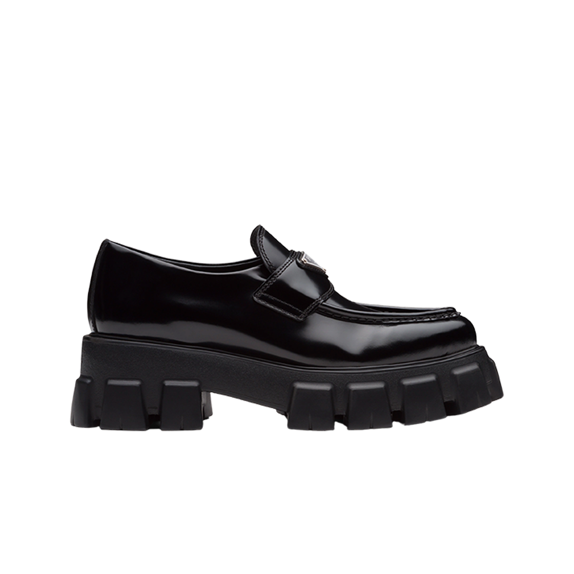 (W) 프라다 모놀리스 포인티 브러쉬드 레더 로퍼 블랙
