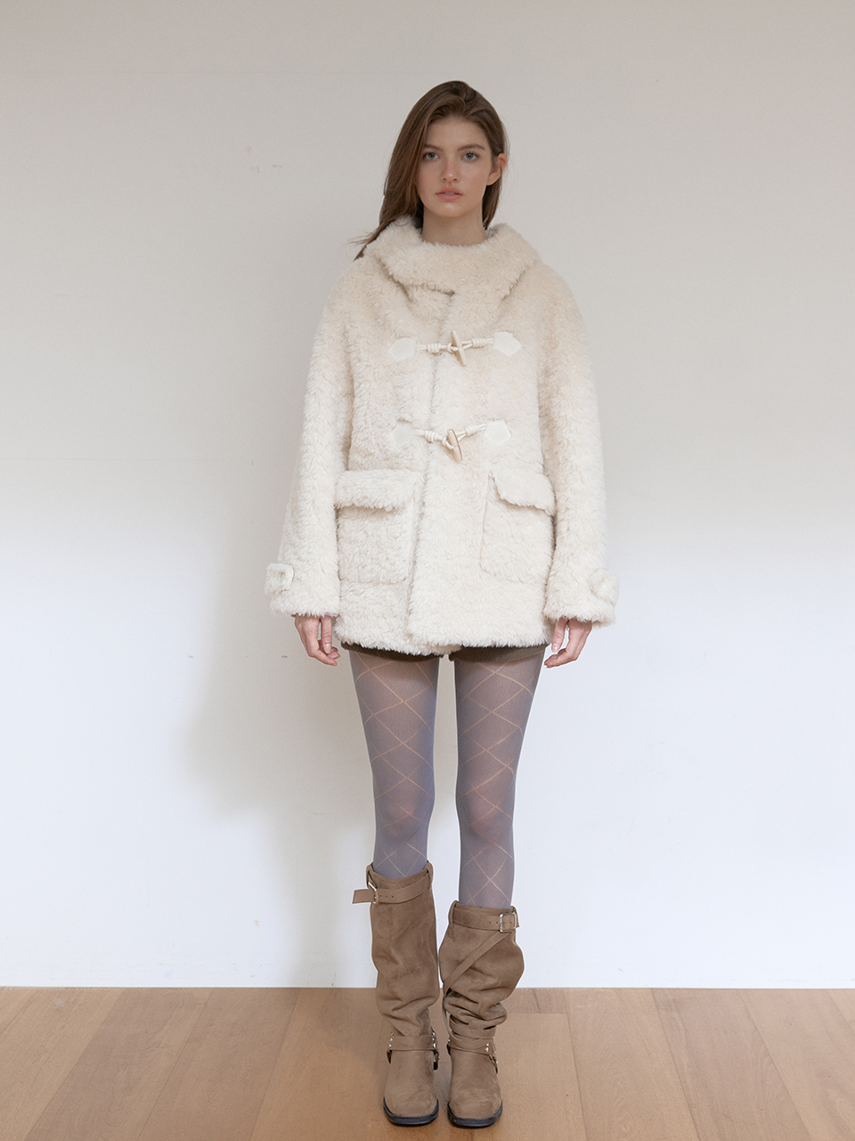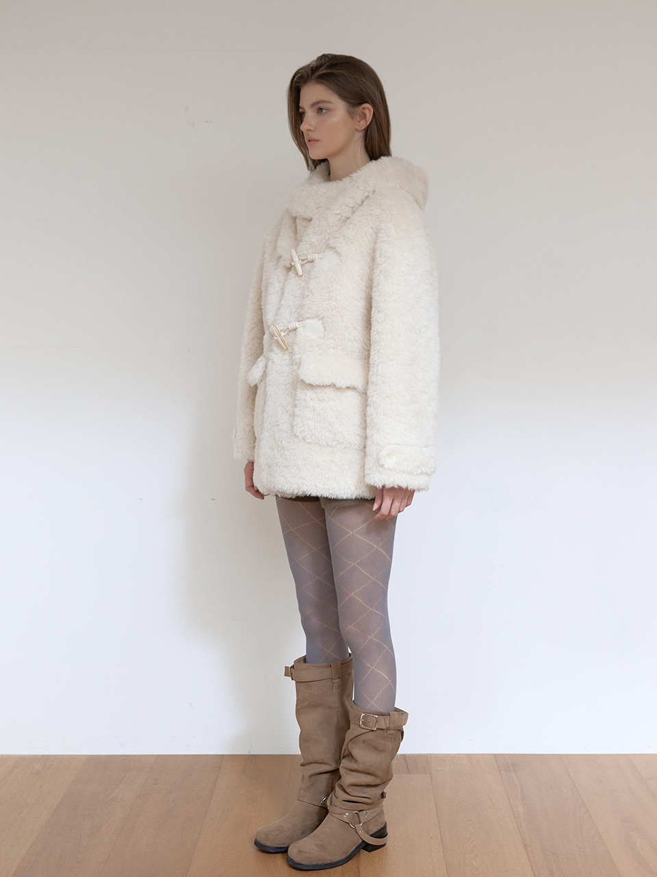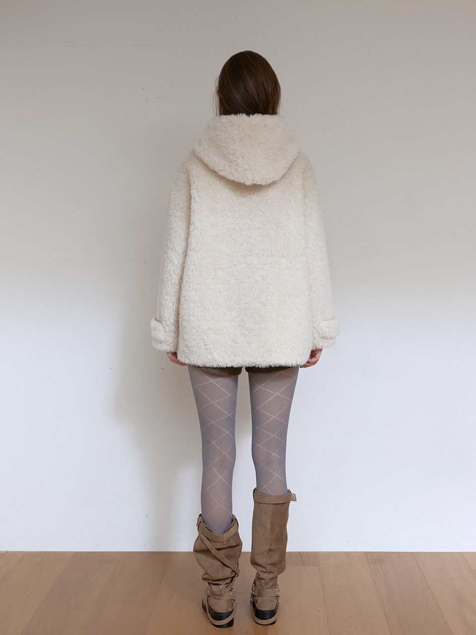 아수라 울 시어링 후디 무스탕 아이보리