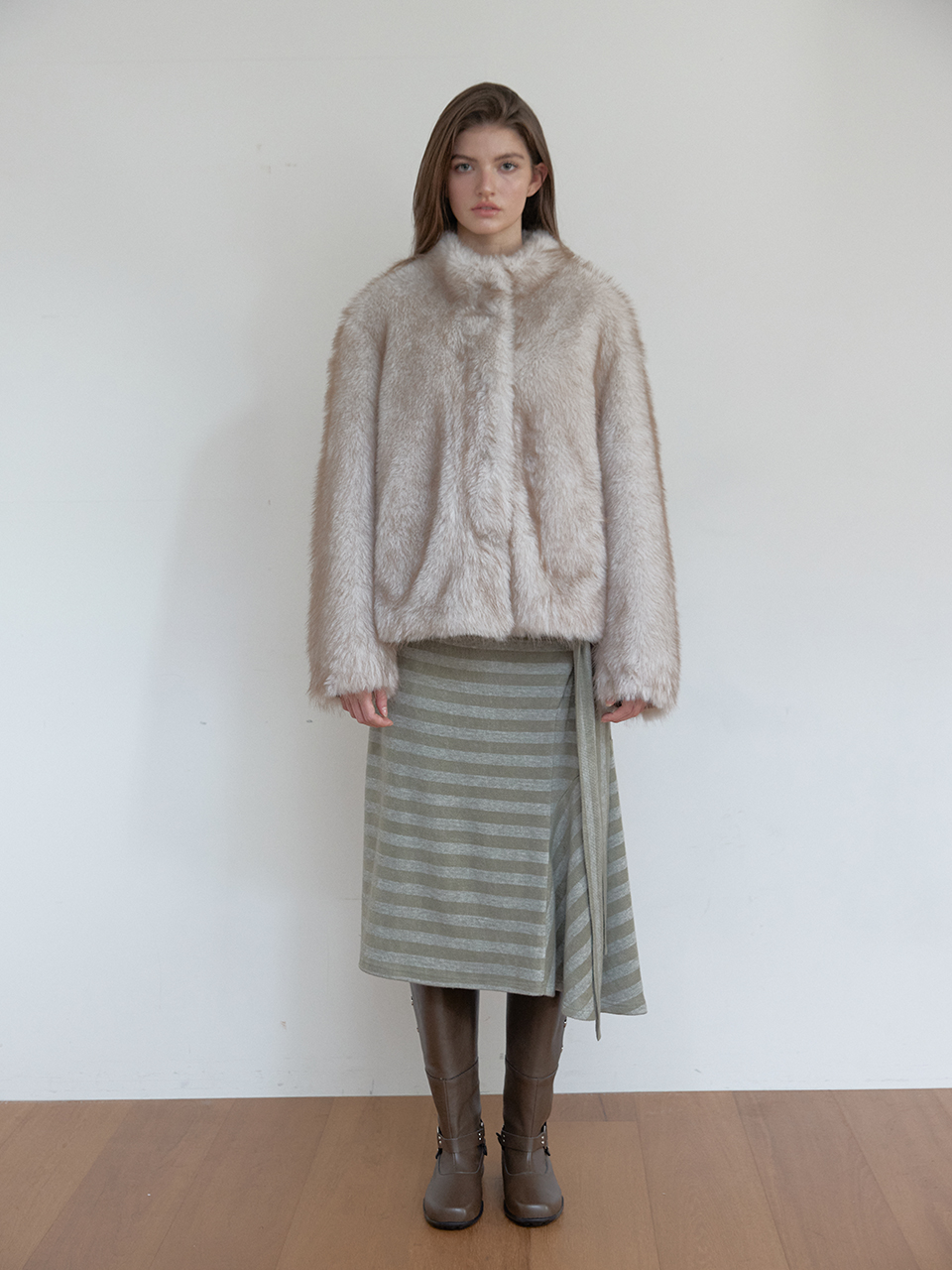 아수라 미스트 톤 퍼 자켓 아이보리
