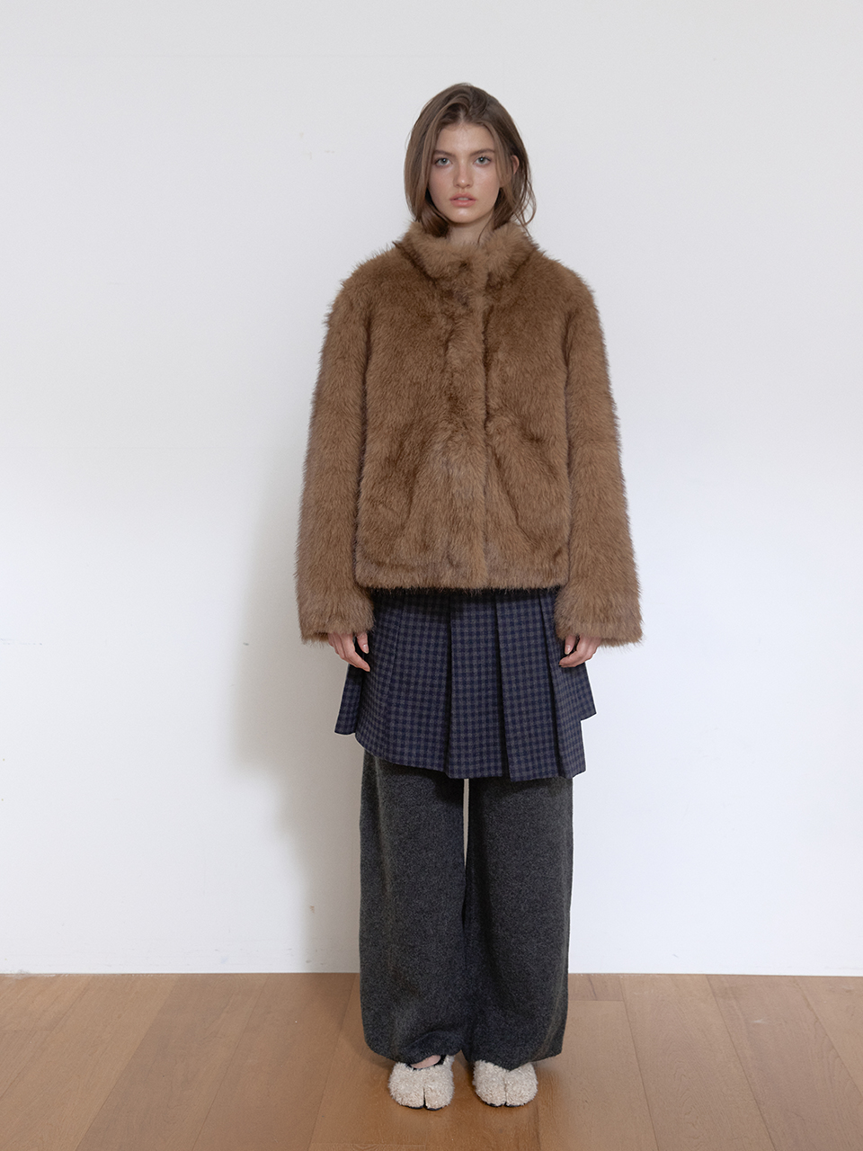아수라 미스트 톤 퍼 자켓 브라운