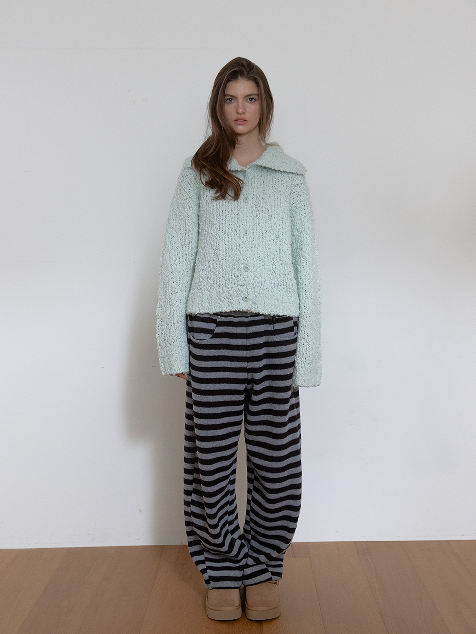 아수라 코지 하이넥 가디건 스카이 블루