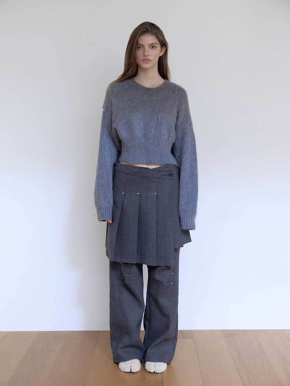 아수라 울 리벳 플리츠 랩 스커트 차콜