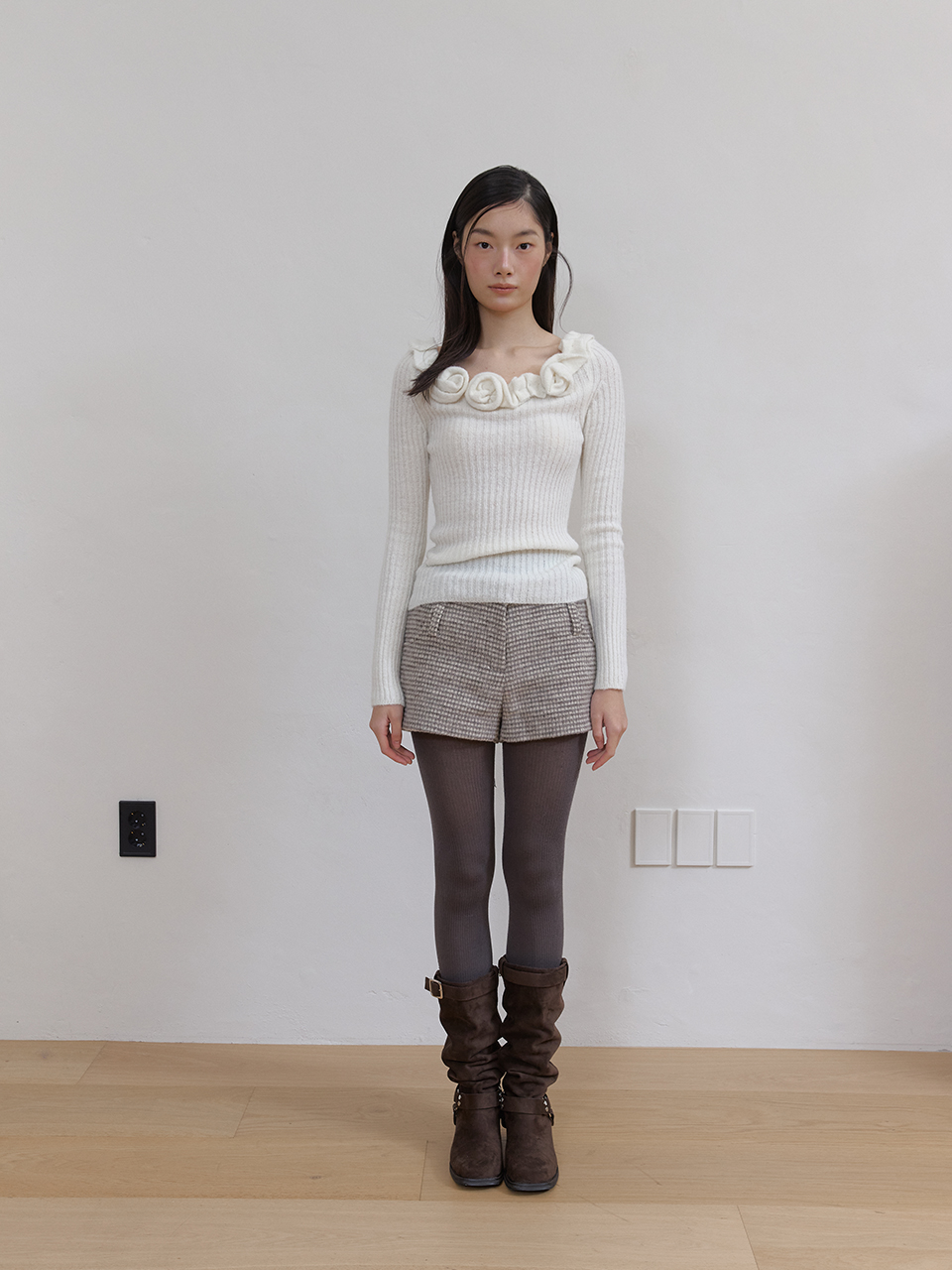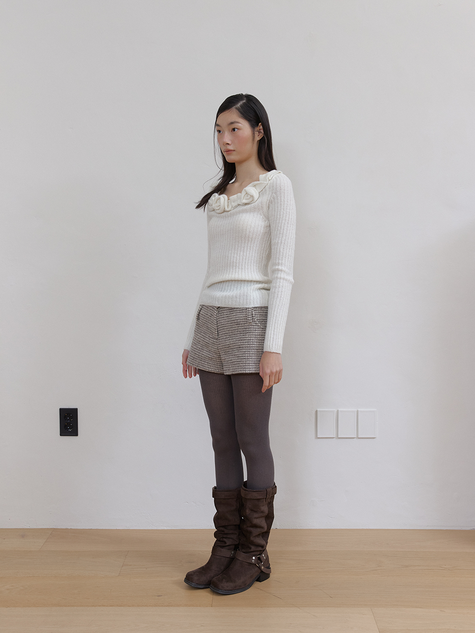 아수라 더블 벨트 울 마이크로 팬츠 아이보리 체크