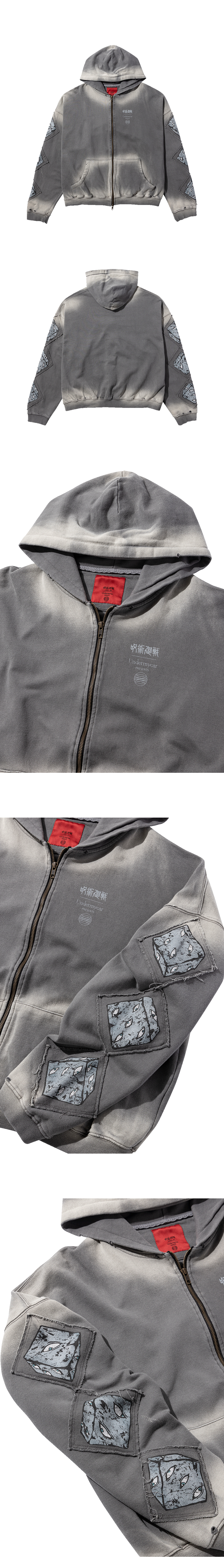 주술회전 언더마이카 옥문강 패츠 빈티지 후드 집업 차콜