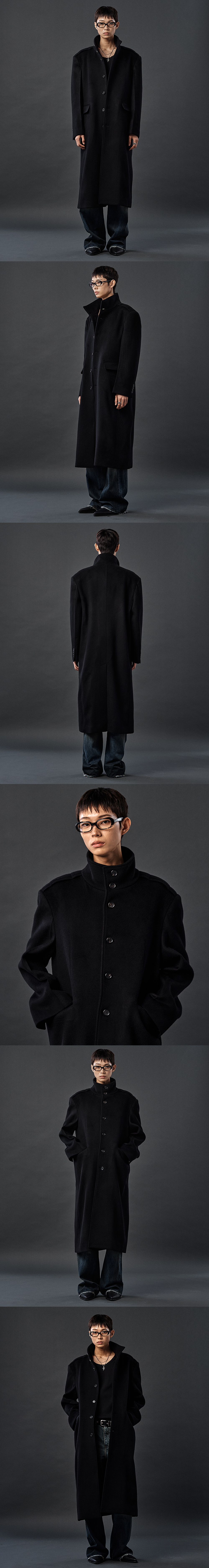 리스탁 소재 변경 공지 리스탁 제품 - SHELL : WOOL 80% CASHMERE 10% NYLON 10%(상세 제품 컷 참고) 기존 제품 - SHELL : WOOL 95% CASHMERE 5% 울-캐시미어 블렌드 원단으로 제작된 하이넥 코트입니다. 하이넥 구조와 견장 디테일이 상부 실루엣의 중심을 형성하며, 직선적인 라인으로 전체 실루엣을 정리합니다. 밀도높은 조직이 형태를 깔끔하게 유지하고, 맥시한 기장으로 떨어지며 안정적인 밸런스를 완성합니다. -DETAIL- 세미 오버 실루엣 하이넥 구조 어깨 견장 디테일 프런트 버튼 여밈 천연 소뿔단추 플랩 포켓 소매 리얼 버튼