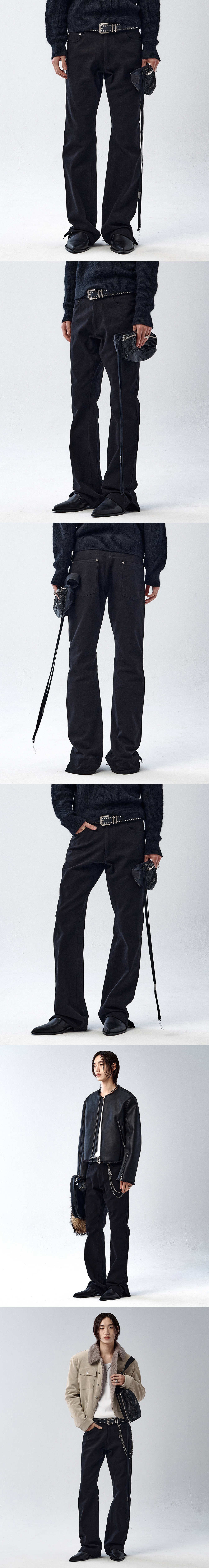 코튼 트윌 원단으로 제작된 부츠컷 팬츠입니다. 슬림하게 떨어지는 실루엣에 부츠컷 라인을 결합해 다리 라인을 따라 자연스럽게 퍼지는 실루엣이 세련된 무드를 연출합니다. 코튼 트윌의 탄탄한 조직감과 은은한 결감이 어우러져 캐주얼하면서도 단정한 인상을 완성합니다. -DETAIL- 코튼 트윌 원단 부츠컷 실루엣 5포켓 디자인 리벳 디테일