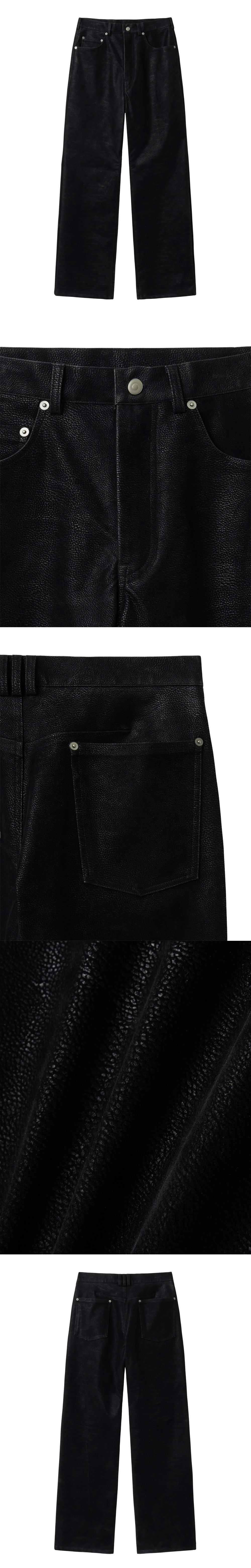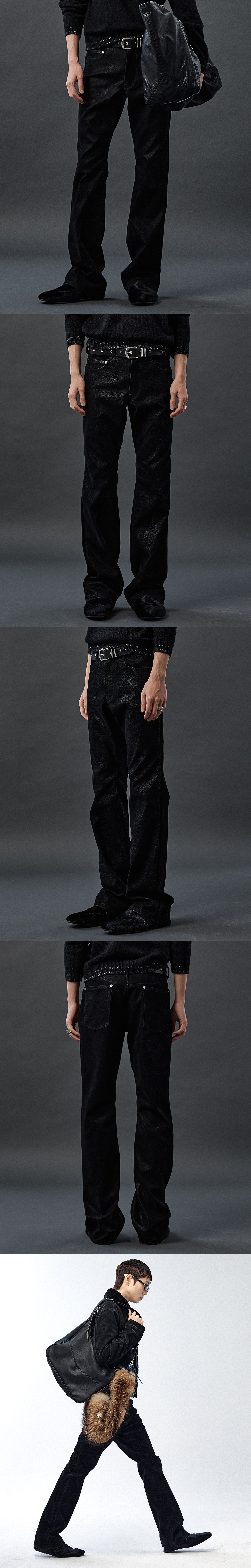 매트한 터치감 위에 은은한 광택이 더해진 인조 누벅 소재로 제작된 부츠컷 팬츠입니다. 슬림하게 떨어지는 실루엣에 부츠컷 라인을 결합해 다리 라인을 따라 자연스럽게 퍼지는 실루엣이 세련된 무드를 연출합니다. 누벅 특유의 미세한 결감이 은은한 깊이를 더해 차분하고 고급스러운 인상을 완성합니다. -DETAIL- 인조 누벅 원단 부츠컷 실루엣 5포켓 디자인 리벳 디테일