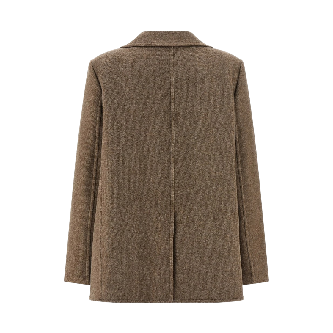 (W) Tory Burch Wide Wool Twill Blend Coat Ashed Mocha