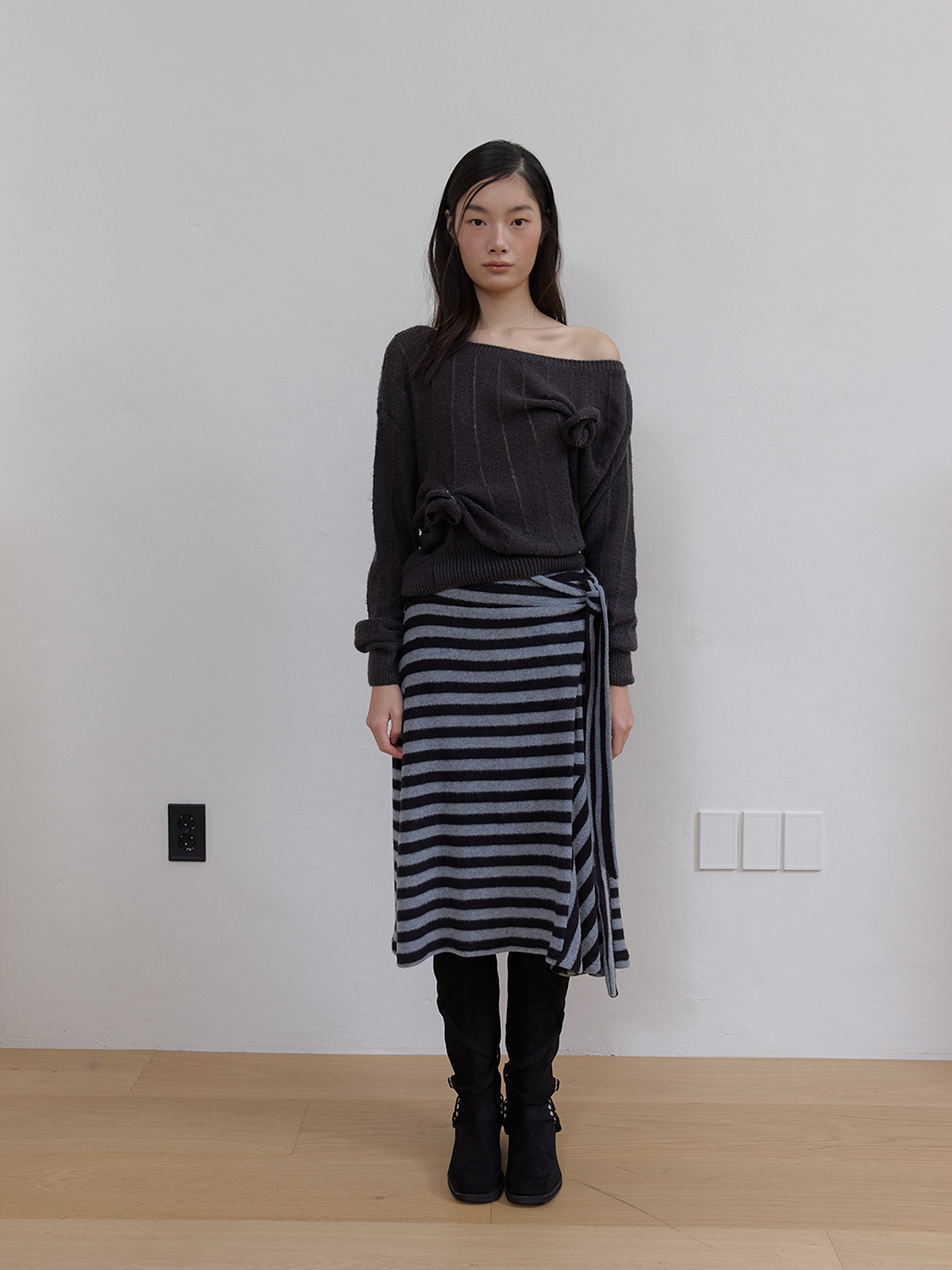 Asura Rose Brooch One Shoulder Knit Charcoal