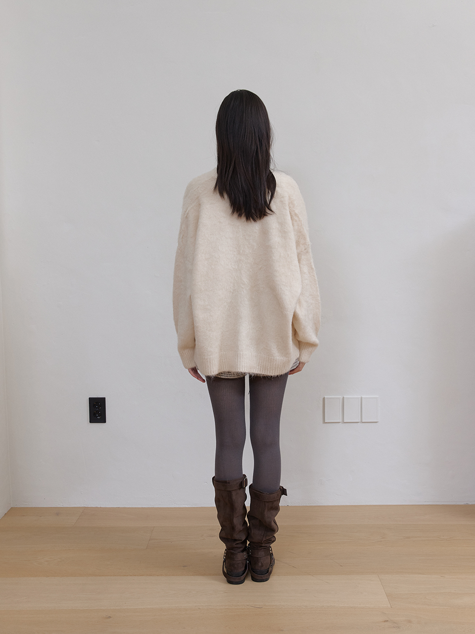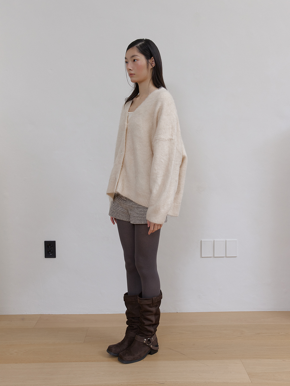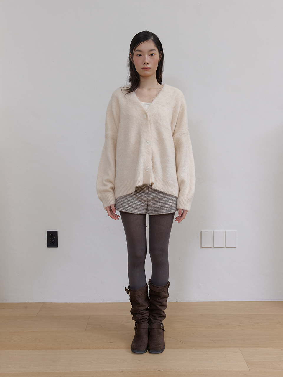 아수라 헤어리 브러시 미디 가디건 아이보리