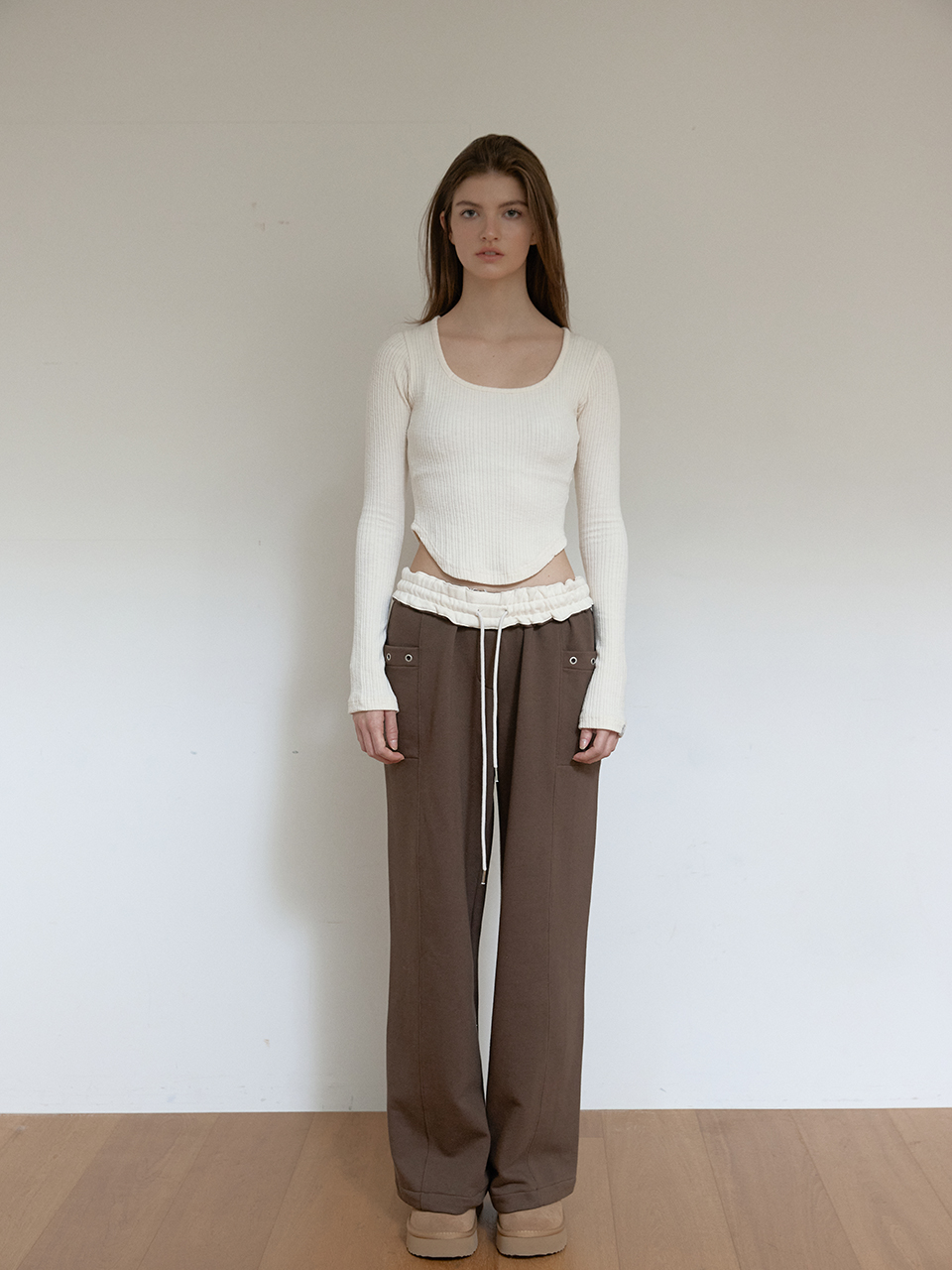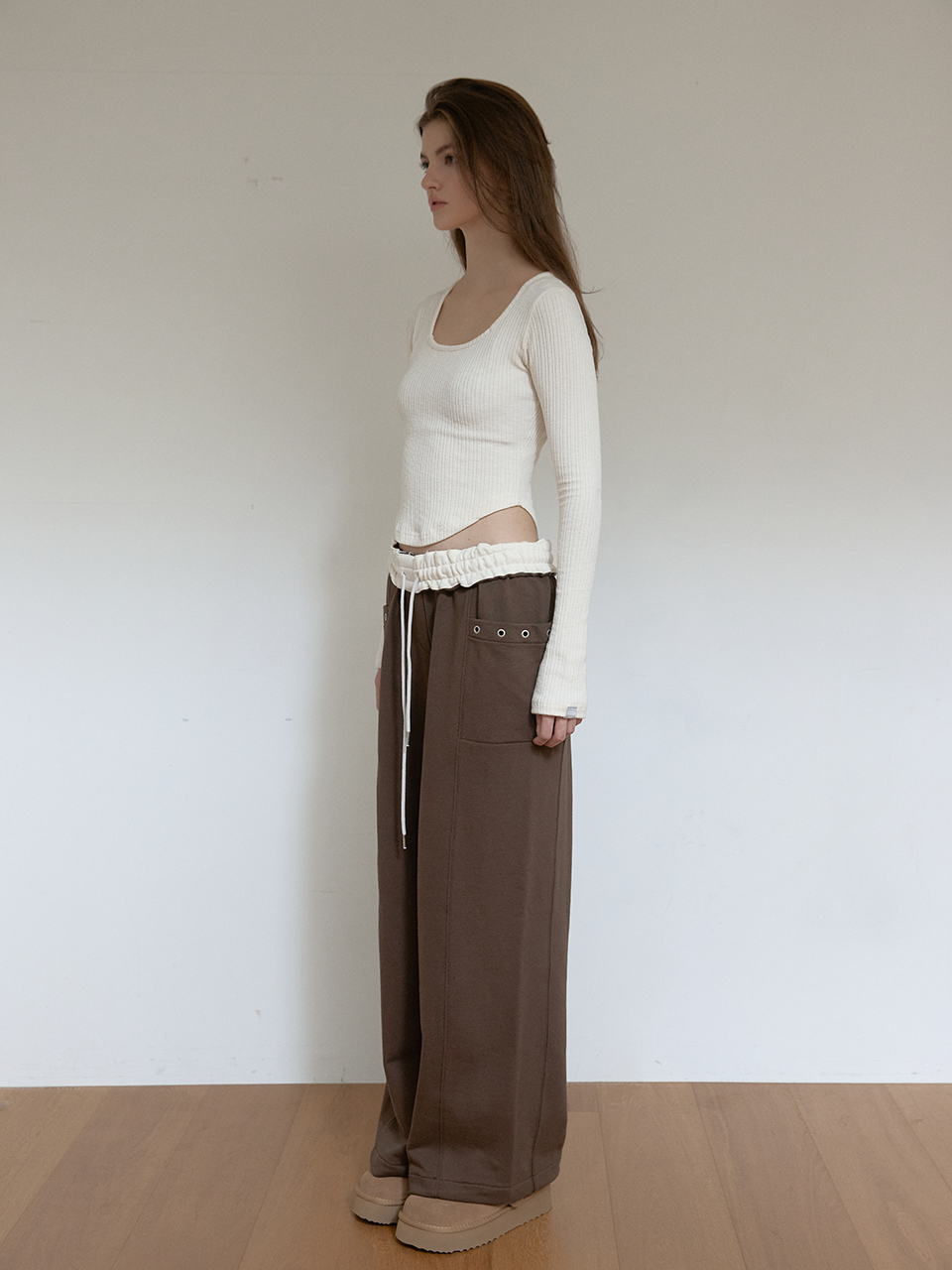아수라 플리스 컬러 플립 스웨트팬츠 브라운