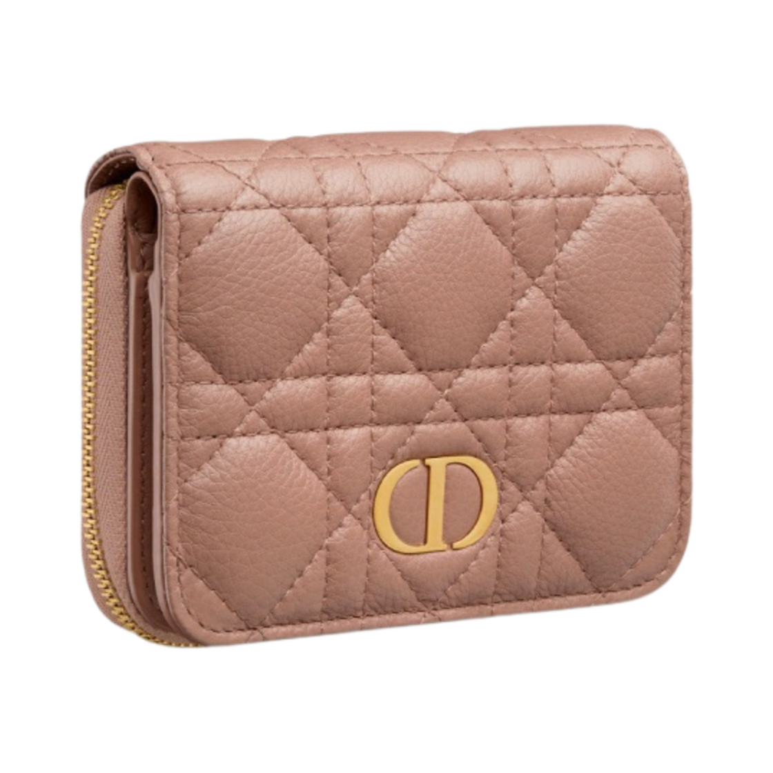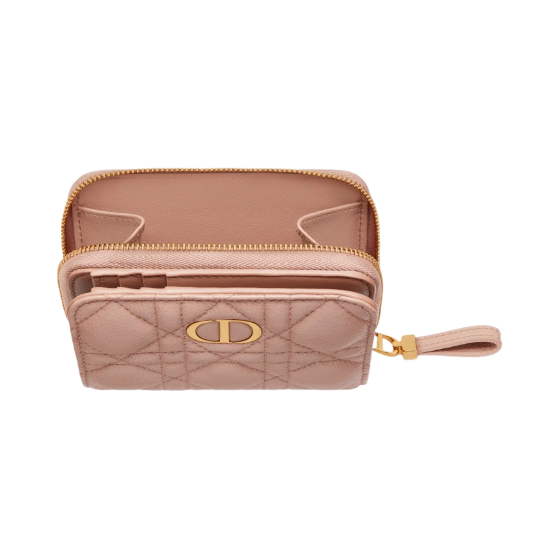 Dior Caro Compact Zipped Wallet Supple Cannage Calfskin Blush