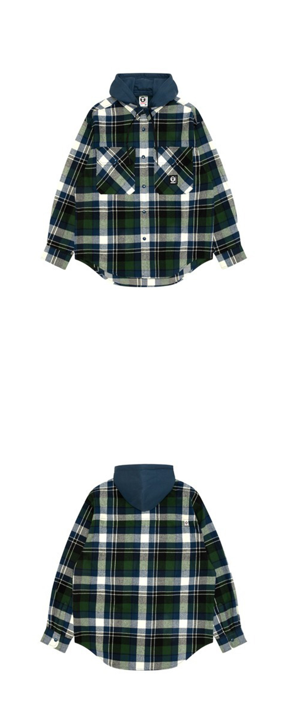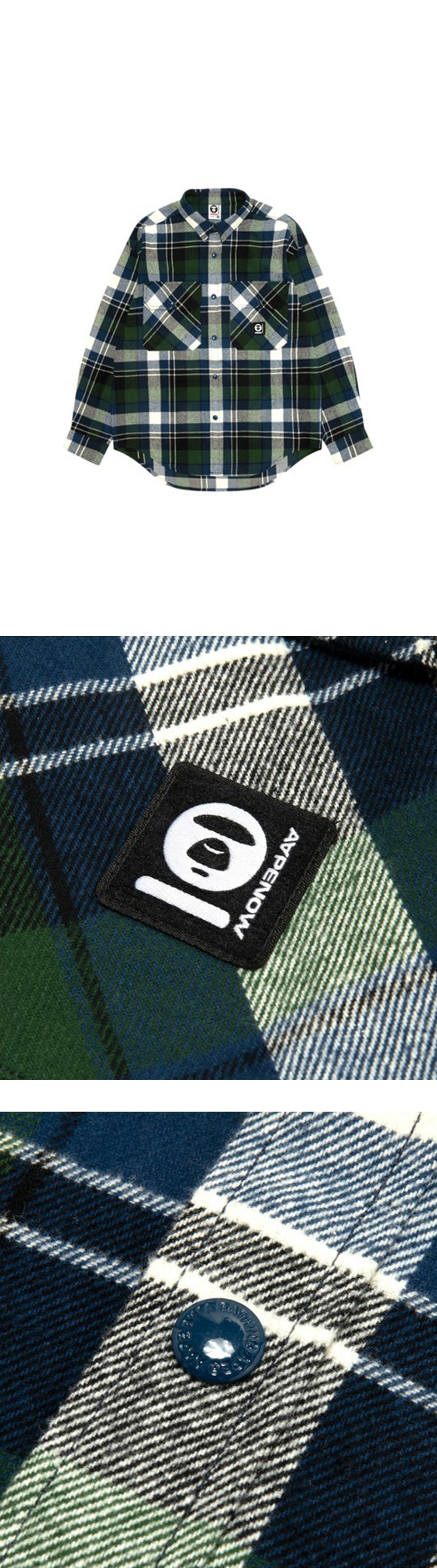 에이프 나우 롱 슬리브 셔츠 네이비 그린입니다. - AAPE CHECK를 사용한 후디넬 셔츠 - 후드 탈부착 가능 - 스냅 버튼으로 간단한 착탈 가능 - 셔츠 재킷으로도 사용할 수 있는 만능 아이템