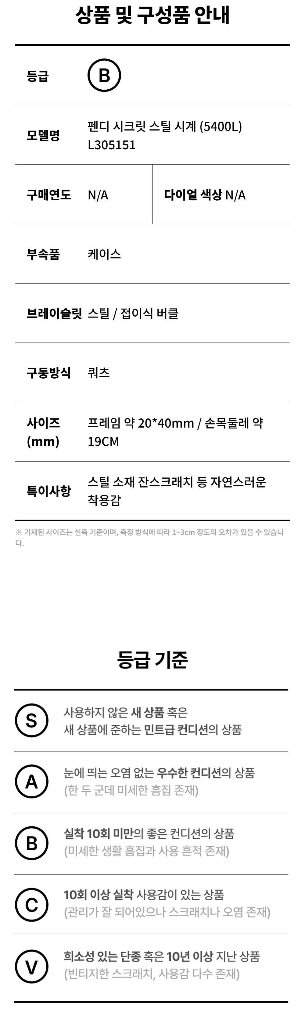 펜디 시크릿 스틸 시계 (5400L) L305151