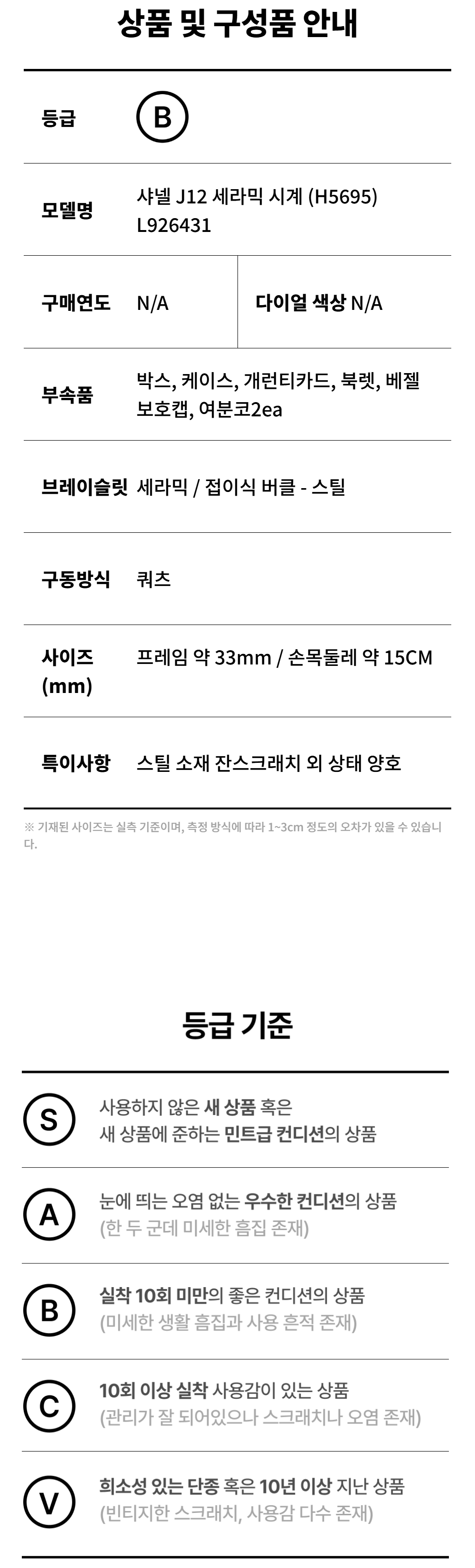 샤넬 J12 세라믹 시계 (H5695) L926431