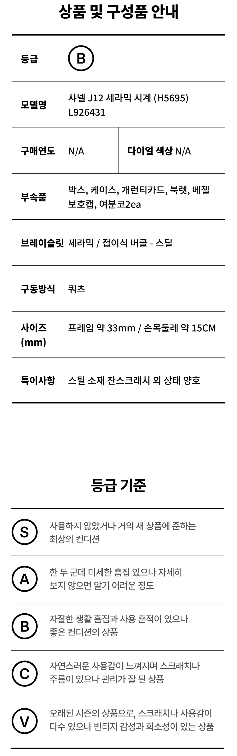 샤넬 J12 세라믹 시계 (H5695) L926431