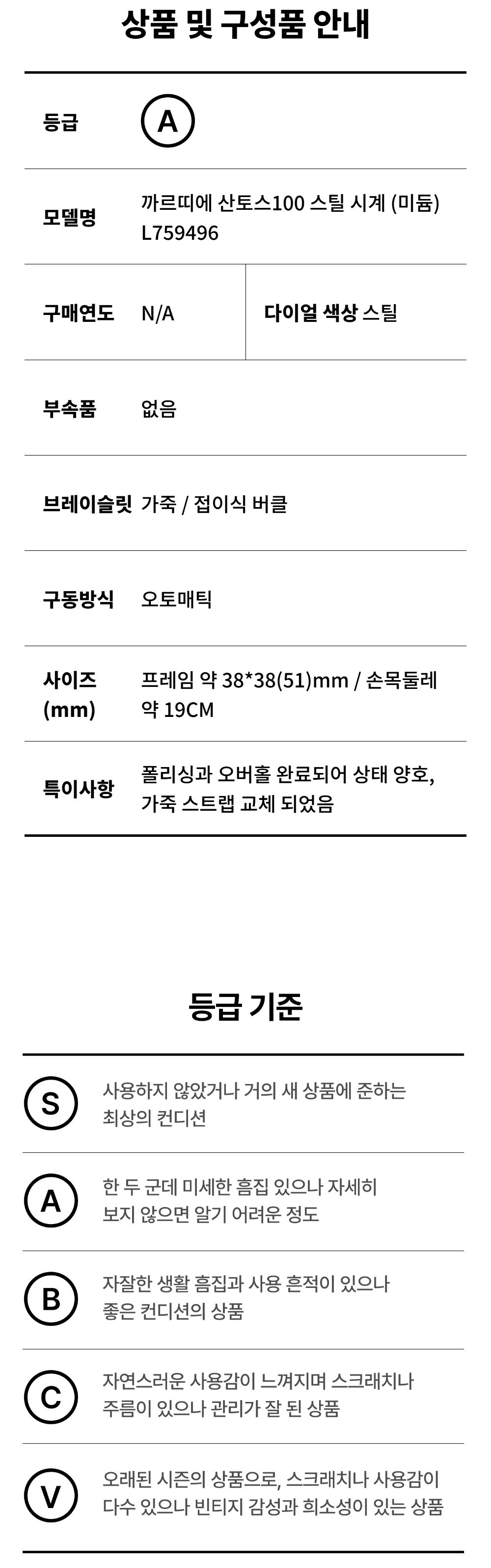 까르띠에 산토스100 스틸 시계 (미듐) L759496