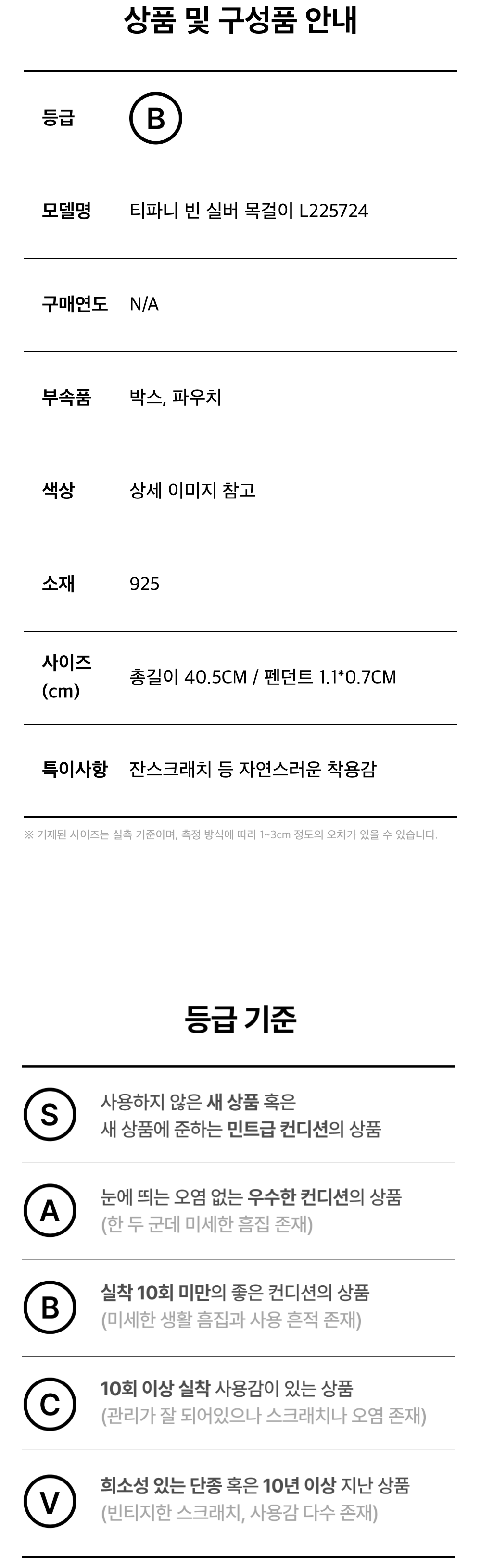 티파니 빈 실버 목걸이 L225724