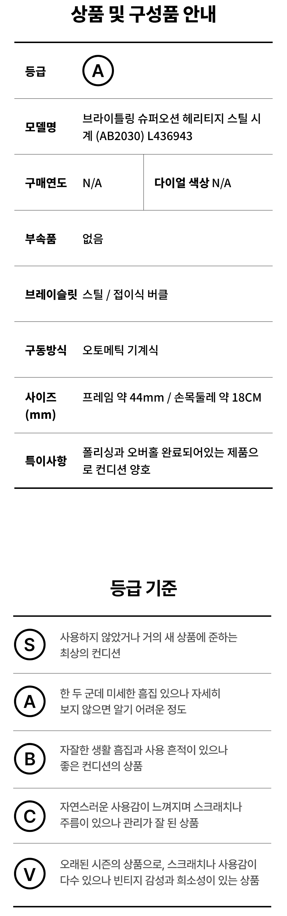 브라이틀링 슈퍼오션 헤리티지 스틸 시계 (AB2030) L436943