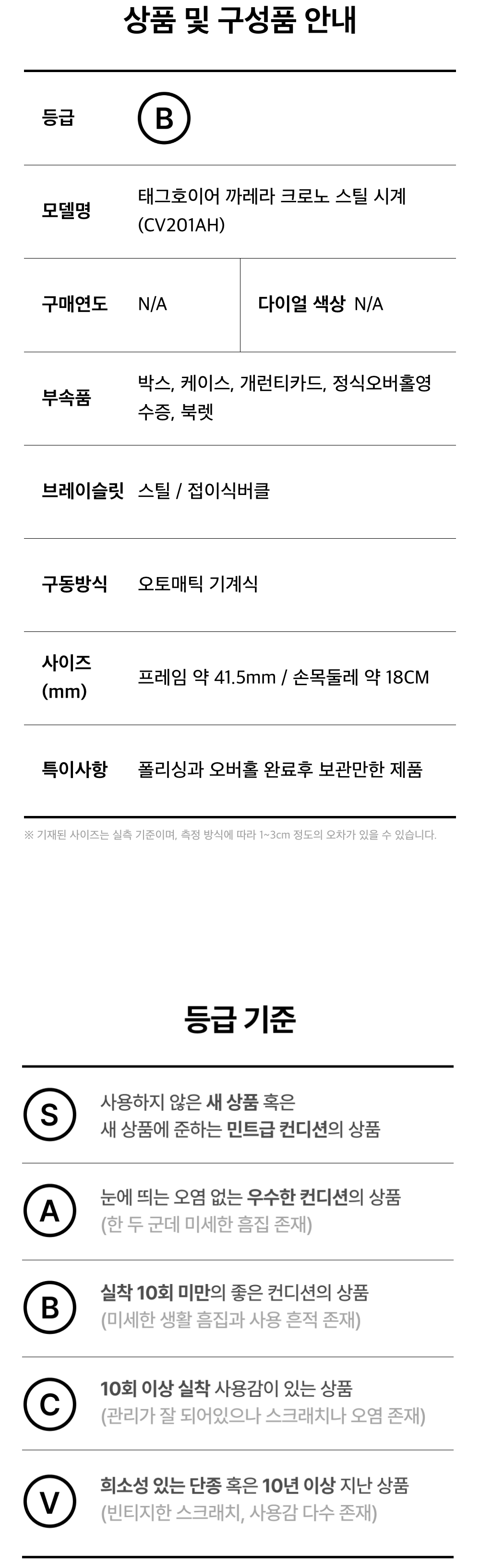 태그호이어 까레라 크로노 스틸 시계 (CV201AH)