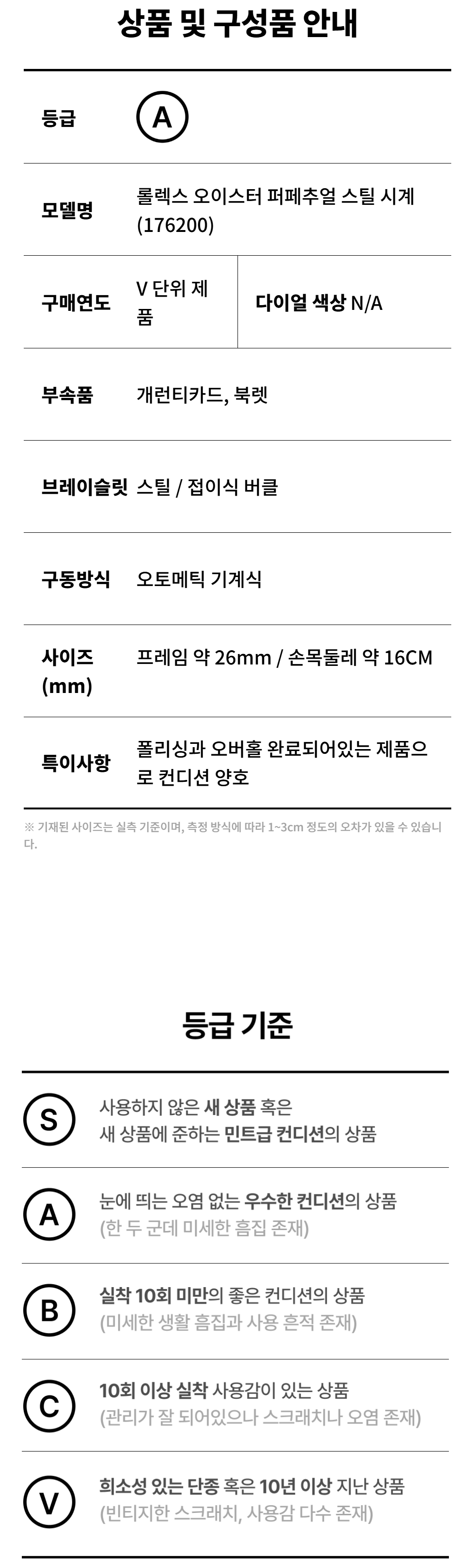 롤렉스 오이스터 퍼페추얼 스틸 시계 (176200)