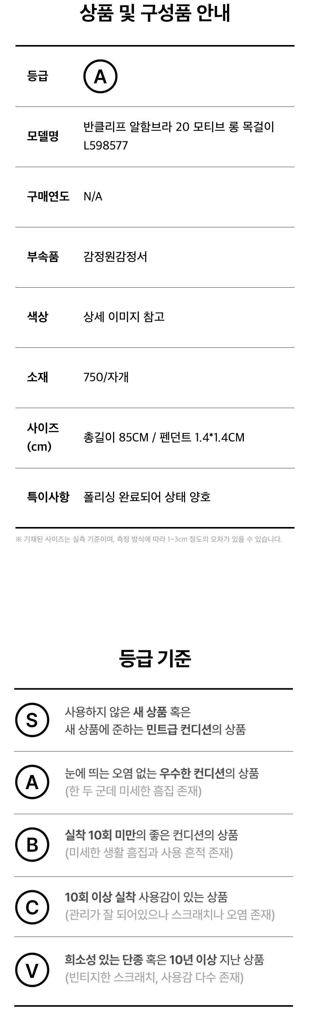 반클리프 알함브라 20 모티브 롱 목걸이 L598577
